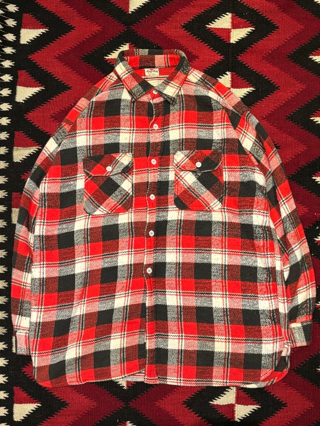 60年代 “XXL位” King Kore キングコール フランネルシャツ マチ付き 赤×黒 レッド×ブラック 古着 古着屋 高円寺 ビンテージ n51006