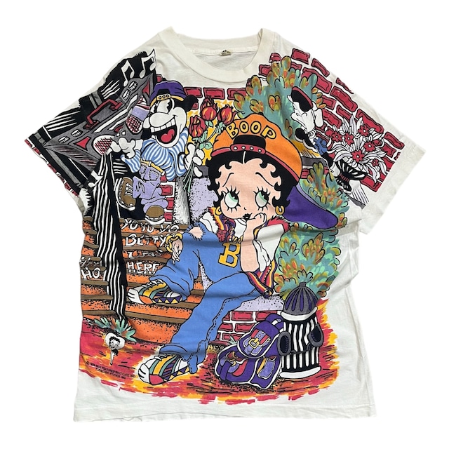 90年代【 BETTY BOOP 】ベティブープ オールオーバープリント キャラクターTシャツ 白 高円寺 古着 古着屋 ビンテージ