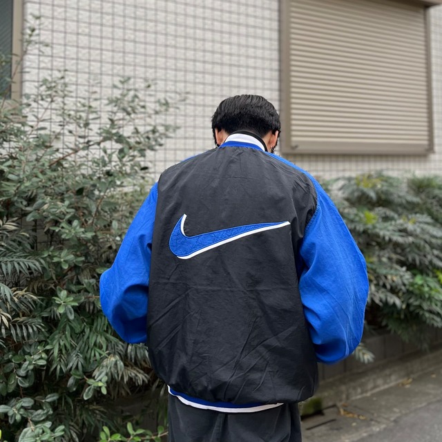 size:L【 NIKE 】ナイキ スウォッシュ ナイロンジャケット ハーフジップ プルオーバー 黒 青 古着 古着屋 高円寺 ビンテージ