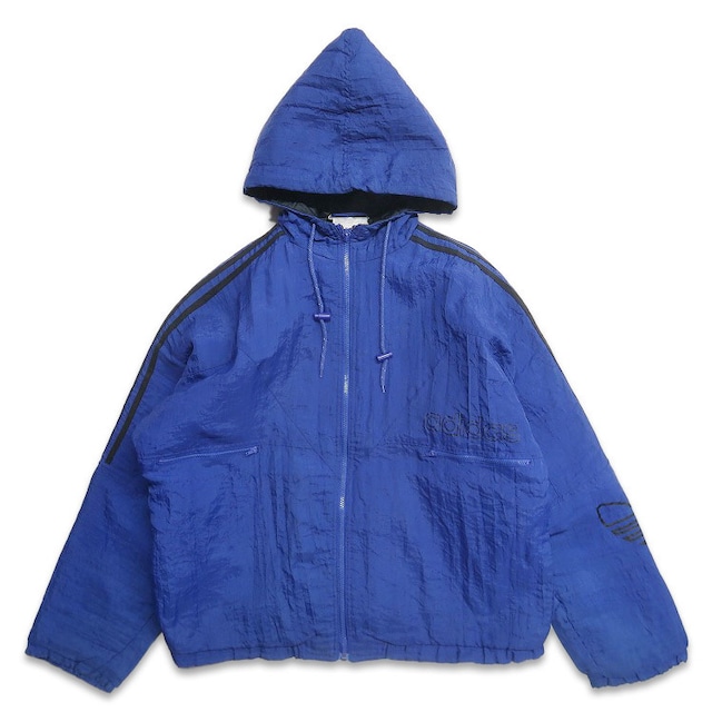 古着 80〜90年代 アディダス adidas プリント 中綿 ジップアップ パーカージャケット ブルー 表記:M gd408181n w51223
