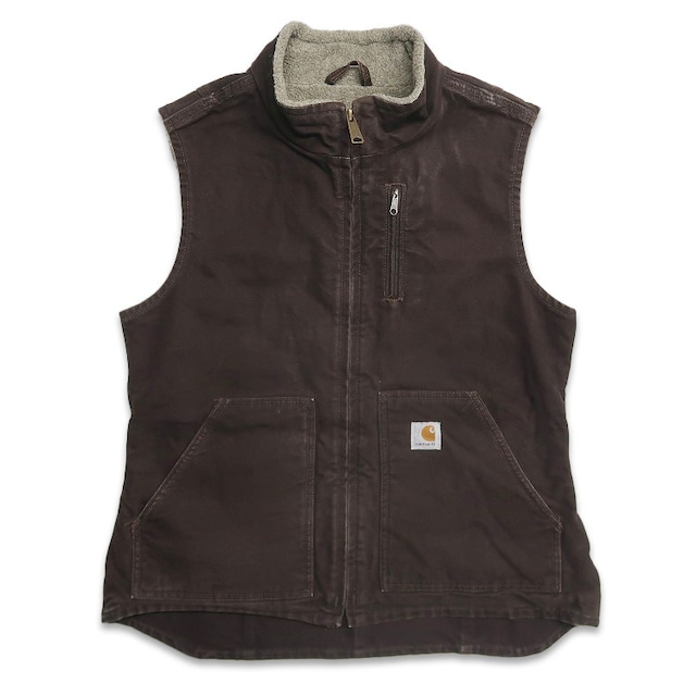 古着 カーハート Carhartt 裏地ボア ダック ワークベスト ダックベスト ブラウン 表記:2XL-TALL gd408190n w51224