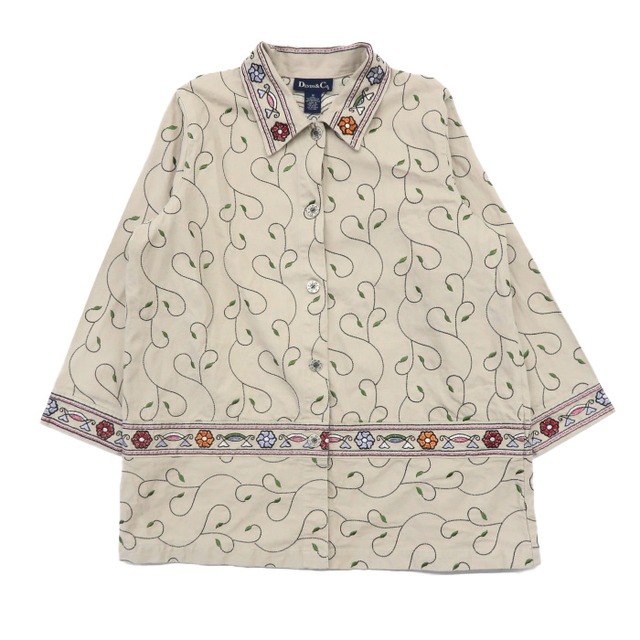 古着 レディース デザインジャケット カバーオール 刺繍 ベージュ サイズ表記:1X gd76282