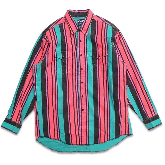 古着 〜90年代 ラングラー Wrangler ストライプ柄 ウエスタンシャツ 長袖シャツ 表記:17 1/2×35 gd403767n w41004