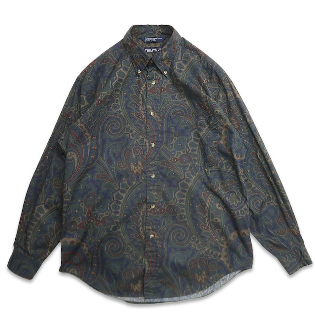 古着 90年代 ノーティカ NAUTICA 総柄 ペイズリー柄 ボタンダウンシャツ 長袖シャツ 表記:M gd408692n w60305