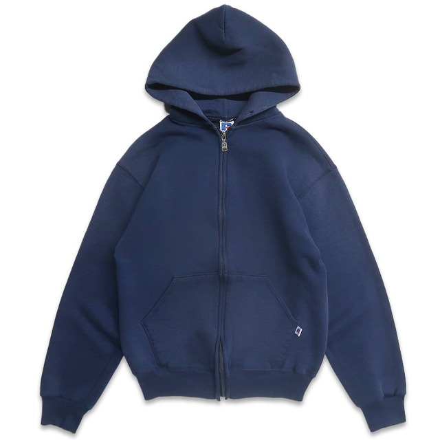 古着 90年代 USA製 ラッセル RUSSELL 無地 ジップアップ スウェットパーカー トレーナー ネイビー 表記:S gd408166n w51222