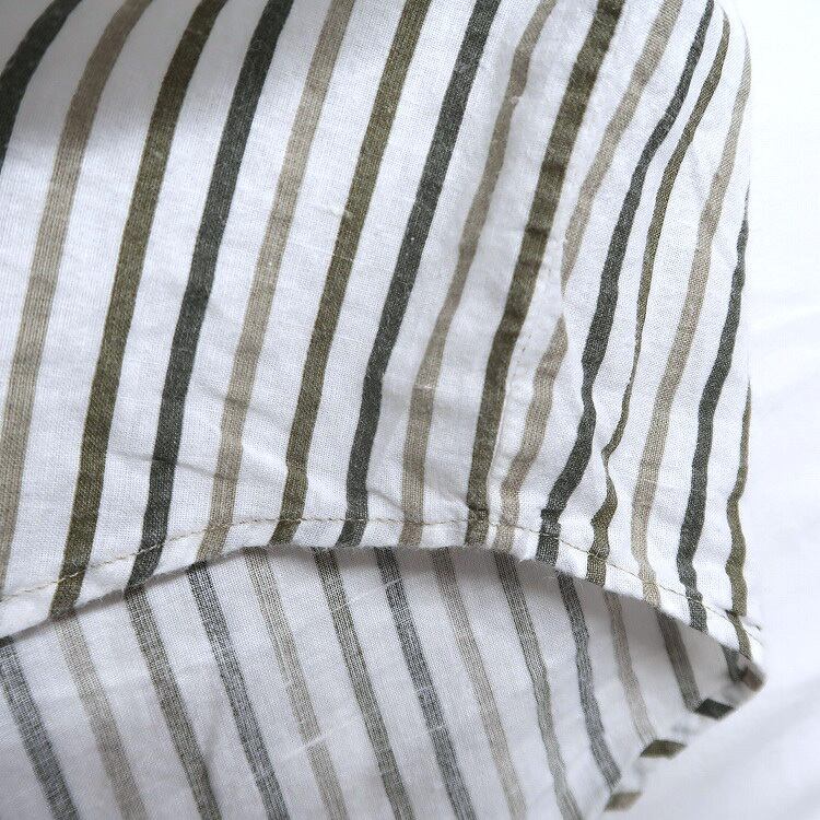 【お客様専用】古着 Bugle Boy Company ノーカラー 半袖シャツ ストライプ 表記:XL gd406732n w50719