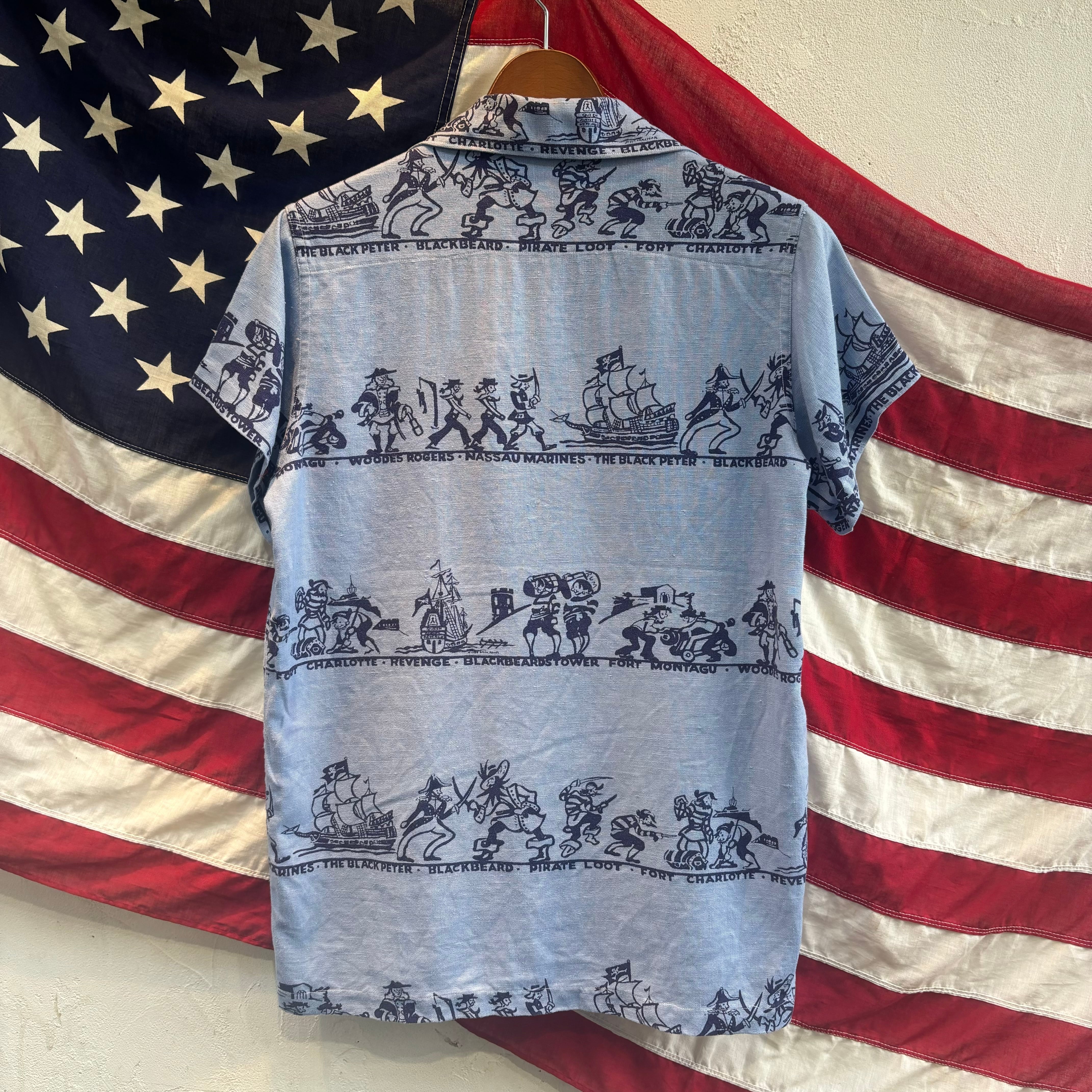 50年代~ “S位” S/S ハワイアンシャツ PIRATE柄 水色 Deadstock 古着 古着屋 高円寺 ビンテージ n250722 | 古着屋SLAT オンラインショップ 【古着通販】|東京 高円寺 レギュラー・ヴィンテージ古着