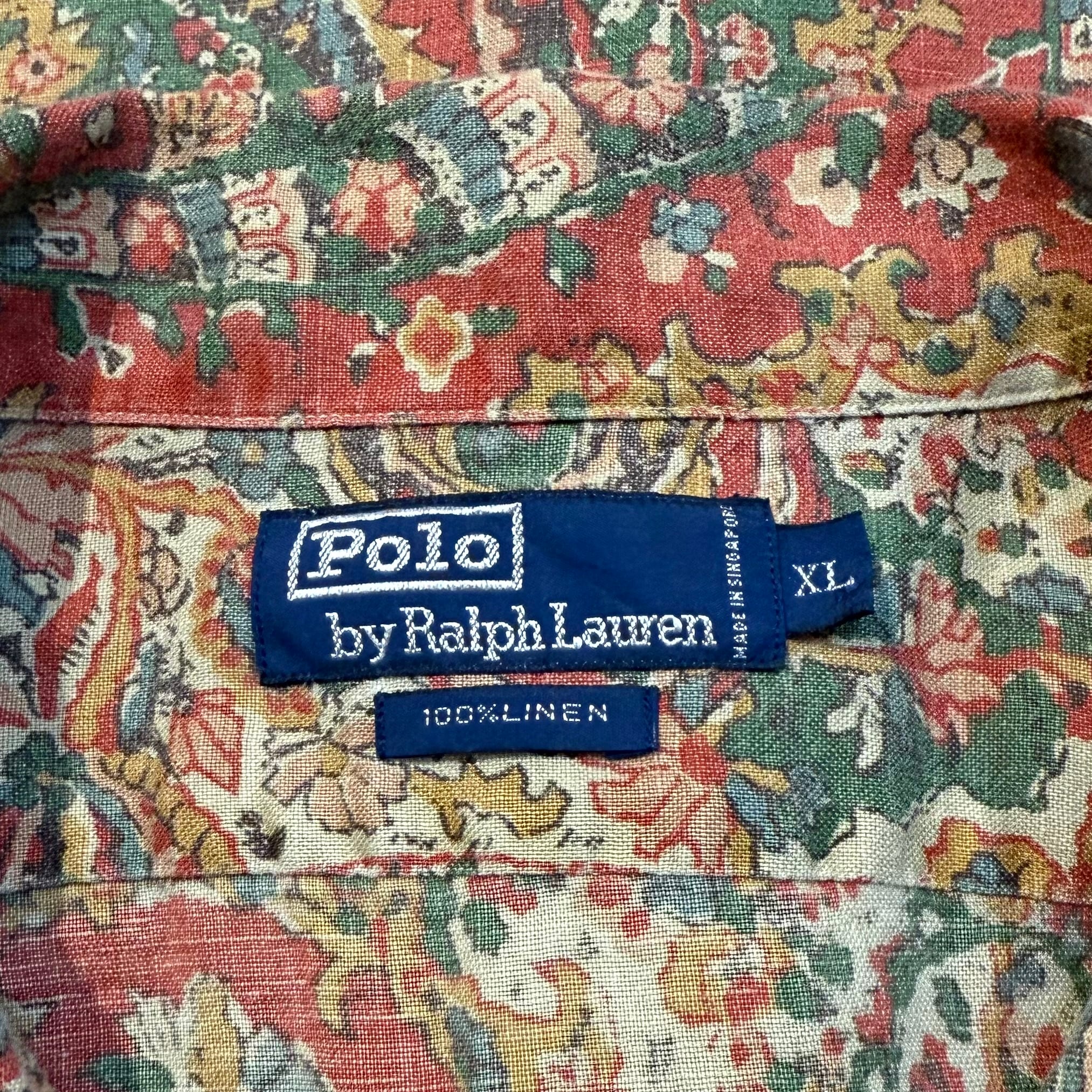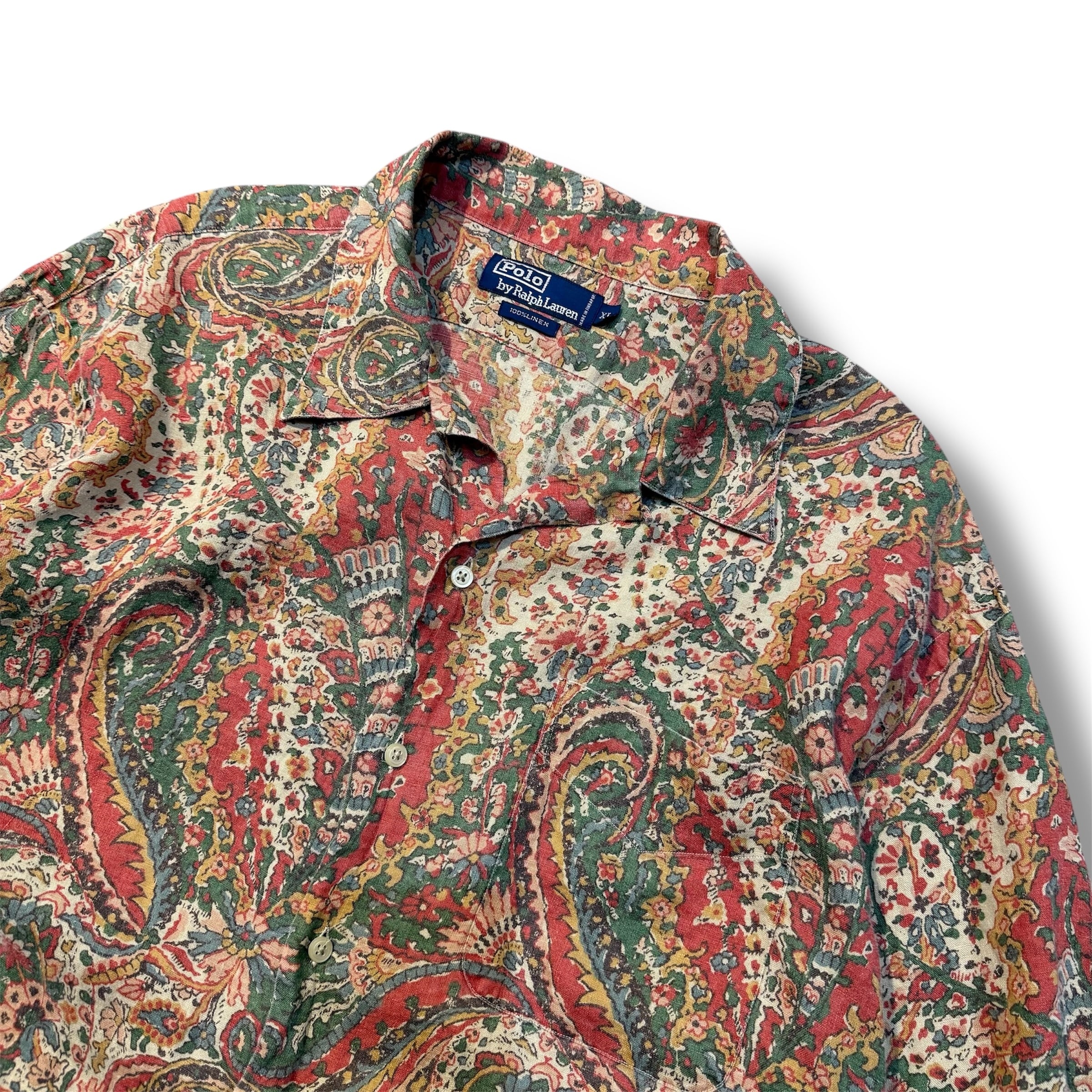"XL" 90年代 Polo by Ralph Lauren ポロバイラルフローレン オープンカラーシャツ リネン ペイズリー ボタニカル 総柄 古着 古着屋 高円寺 ビンテージ n50725