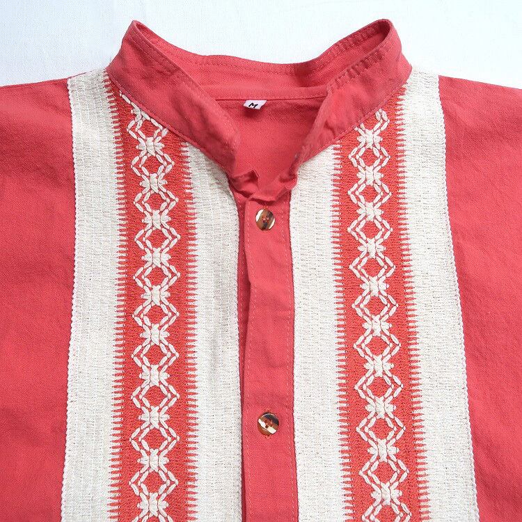 古着 ノーカラー キューバシャツ 半袖シャツ ボックスシャツ ピンク系 表記:M gd406798n w50725