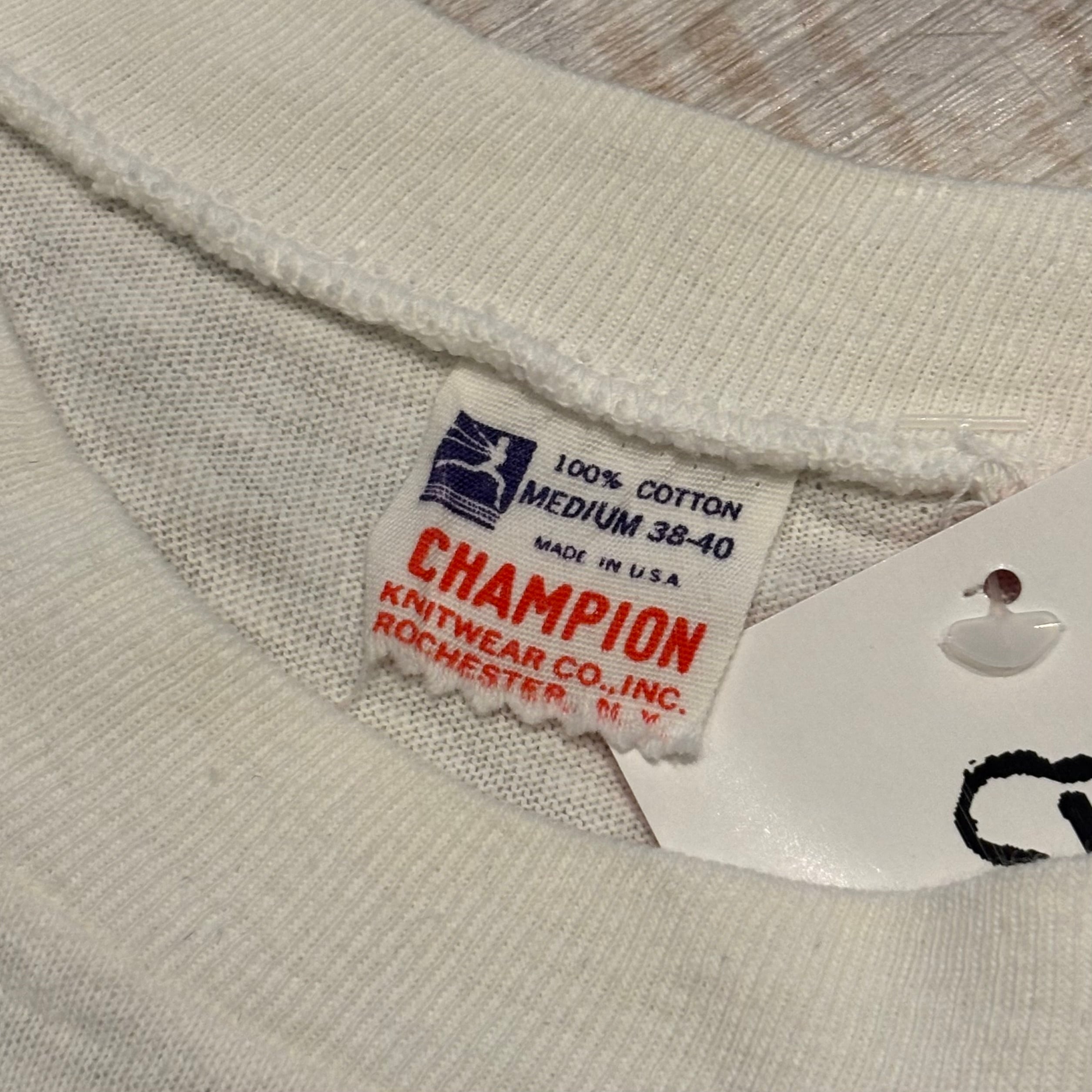 USA製 60年代 "M" Champion チャンピオン プリントTシャツ 大文字ランタグ フロッキープリント 白 ホワイト 古着 古着屋 高円寺 ビンテージ n250731