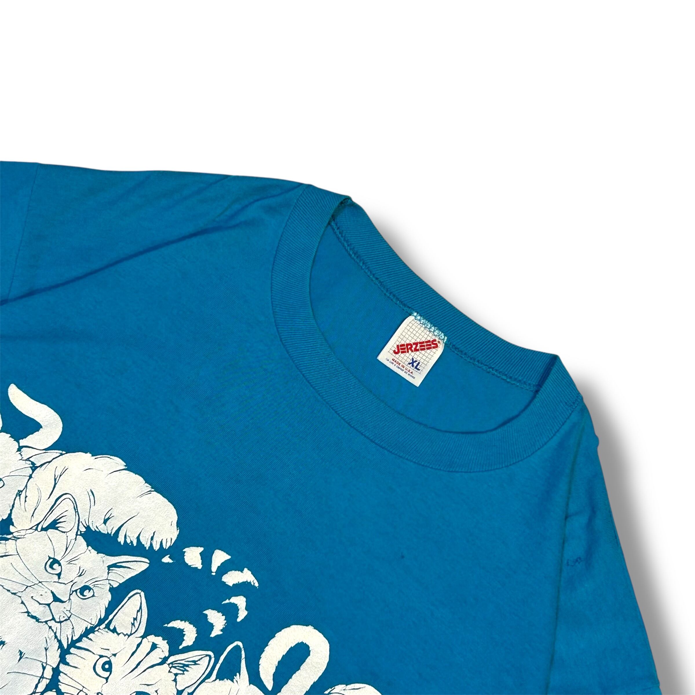 USA製 90年代 "XL" JERZEES LINDA LORI リンダロリ 猫Tシャツ 青 水色 古着 古着屋 高円寺 ビンテージ n50806