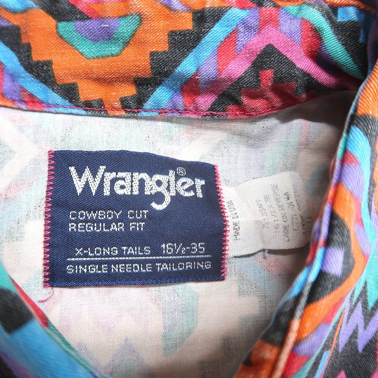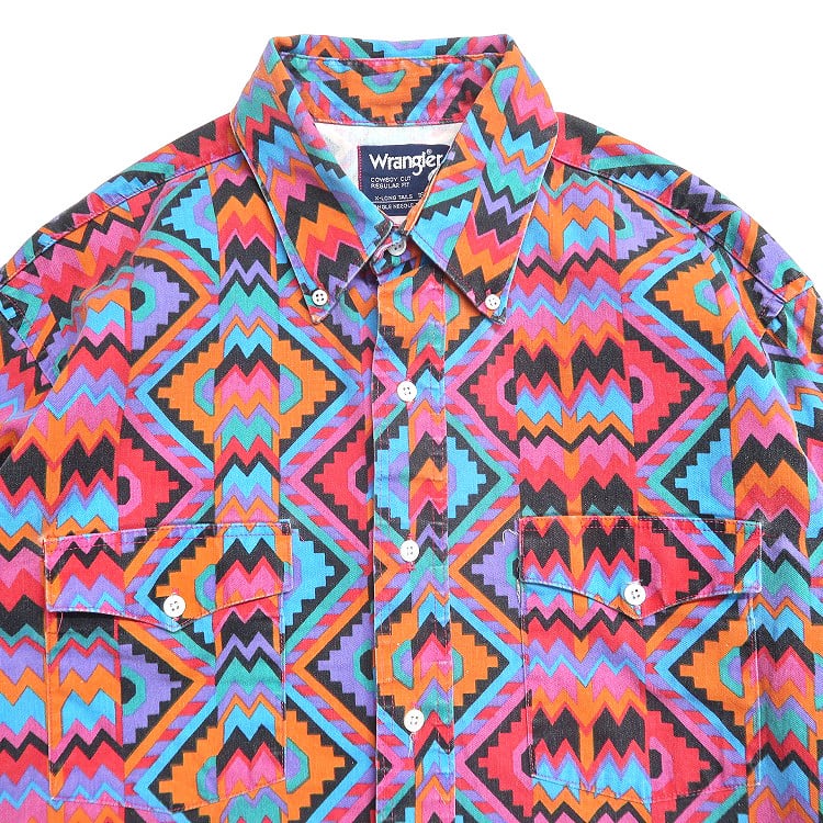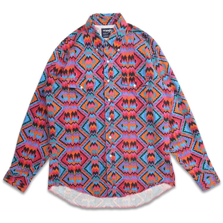 古着 90年代 USA製 ラングラー Wrangler 総柄 ネイティブ柄 ウエスタンシャツ 長袖シャツ 表記:16 1/2-35 gd407119n w50906 | 古着屋SLAT オンラインショップ 【古着通販】|東京 高円寺 レギュラー・ヴィンテージ古着