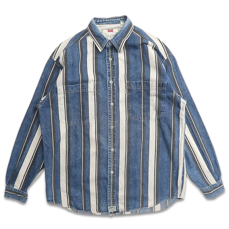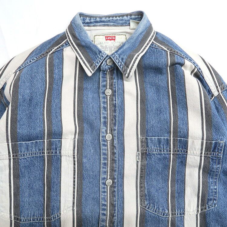 古着 90年代〜 リーバイス Levi's ストライプシャツ デニムシャツ 長袖シャツ 表記:M gd407121n w50906