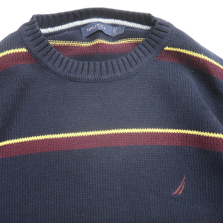 古着 ノーティカ NAUTICA コットンニット セーター ワンポイント ボーダー 表記:L gd407373n w50930 | 古着屋SLAT オンラインショップ 【古着通販】|東京 高円寺 レギュラー・ヴィンテージ古着