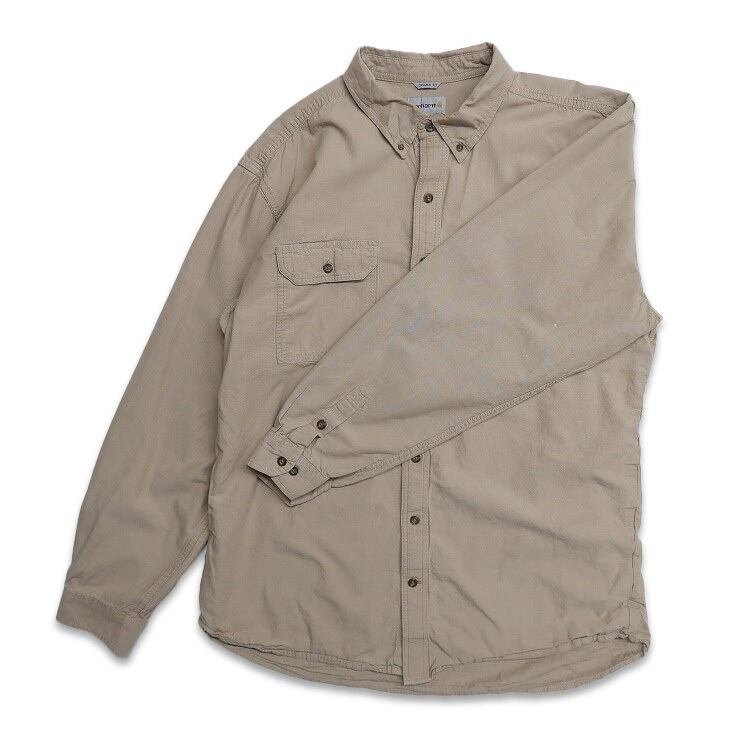 古着 カーハート Carhartt ワークシャツ 長袖シャツ 刺繍 ベージュ系 表記:2XL TALL gd407398n w51002 | 古着屋SLAT オンラインショップ 【古着通販】|東京 高円寺 レギュラー・ヴィンテージ古着