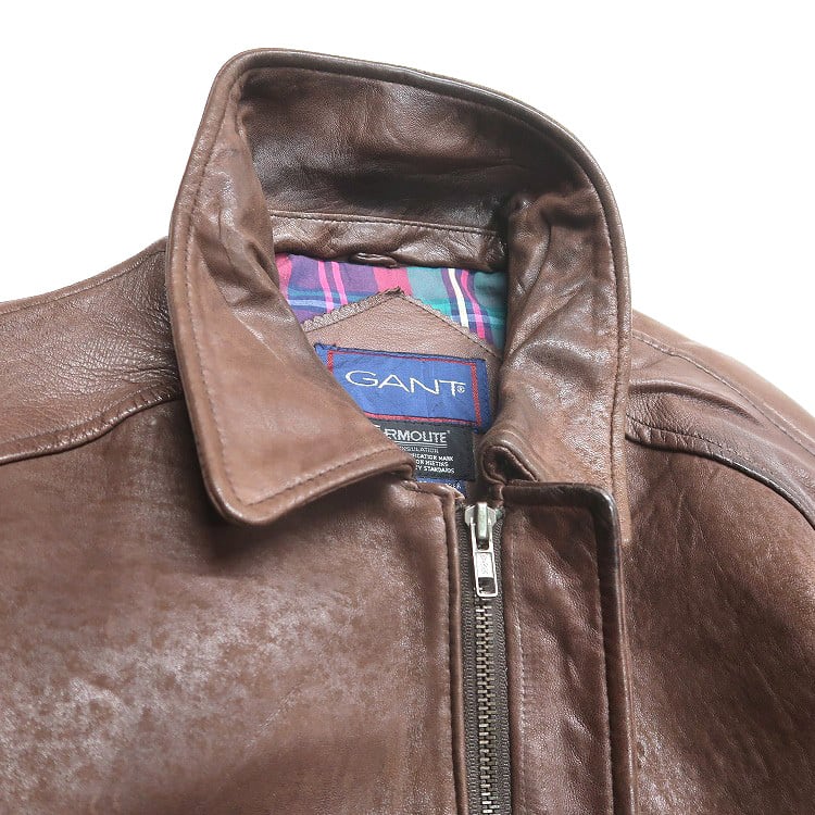古着 90年代 GANT 本革 レザージャケット ブルゾン ブラウン 表記:44 gd407432n w51004 | 古着屋SLAT オンラインショップ 【古着通販】|東京 高円寺 レギュラー・ヴィンテージ古着