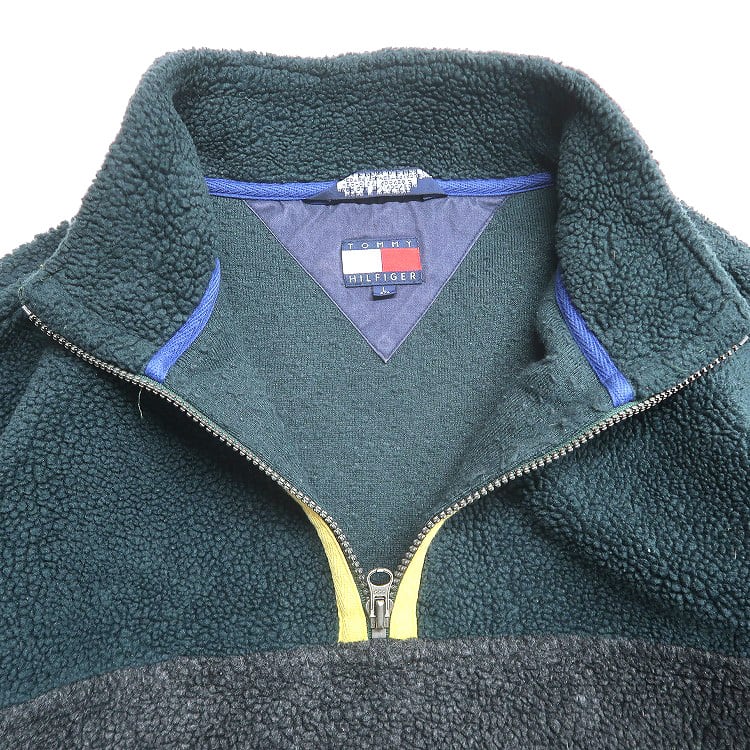 古着 TOMMY トミー ヒルフィガー フリース プルオーバー ハーフジップ ワンポイント グリーン系 表記:L gd407723n w51112 | 古着屋SLAT オンラインショップ 【古着通販】|東京 高円寺 レギュラー・ヴィンテージ古着