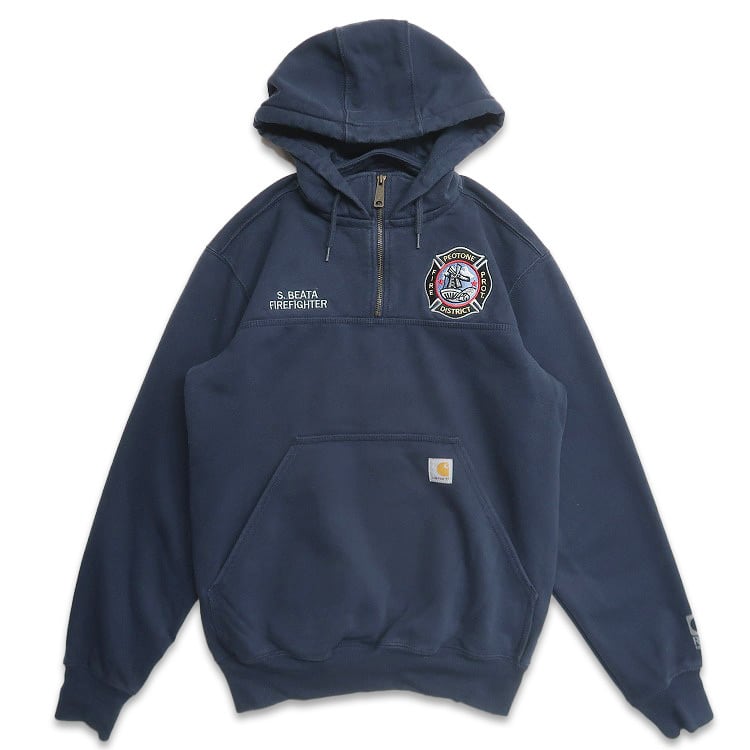 古着 カーハート Carhartt ハーフジップ スウェットパーカー トレーナー ワンポイント 刺繍 ネイビー 表記:S-R gd407860n w51125 | 古着屋SLAT オンラインショップ 【古着通販】|東京 高円寺 レギュラー・ヴィンテージ古着
