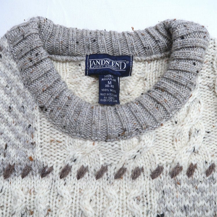 古着 スコットランド製 ランズエンド LANDS'END 総柄 ウールニット アランニット セーター 表記:M gd407927n w51130 | 古着屋SLAT オンラインショップ 【古着通販】|東京 高円寺 レギュラー・ヴィンテージ古着