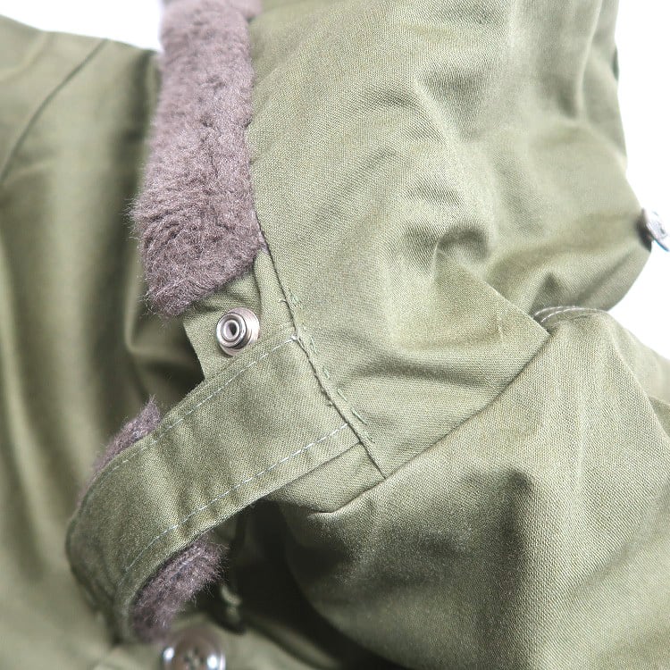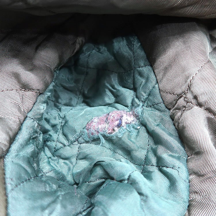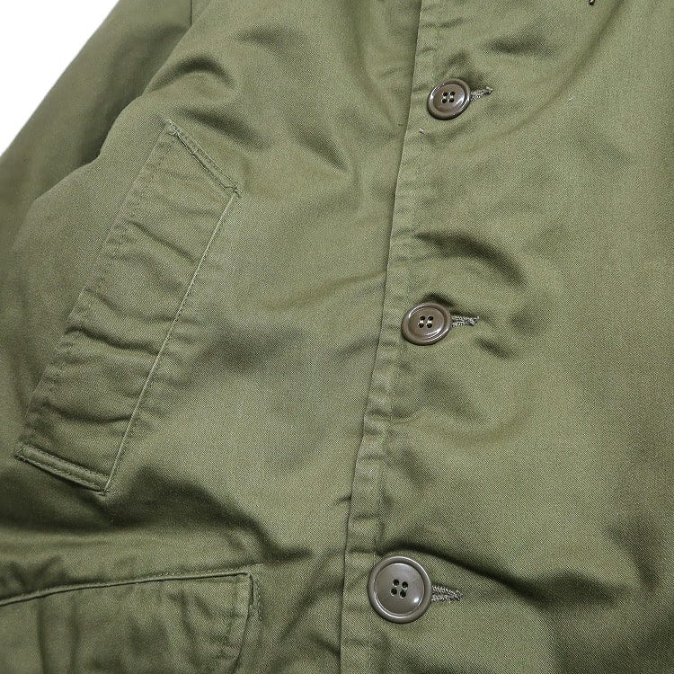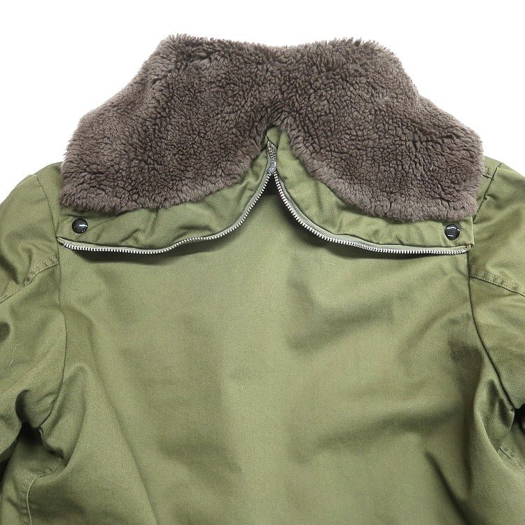 ■説明:全体的に使用感があり薄汚れやダメージ(ジッパー、内側の脇)が見られますが、目立った汚れ、ダメージはありません。※リペア跡(襟ベルト)が見られます。※フロント1番下のボタンが欠損、下から2番目のボタンが付替えてあります。