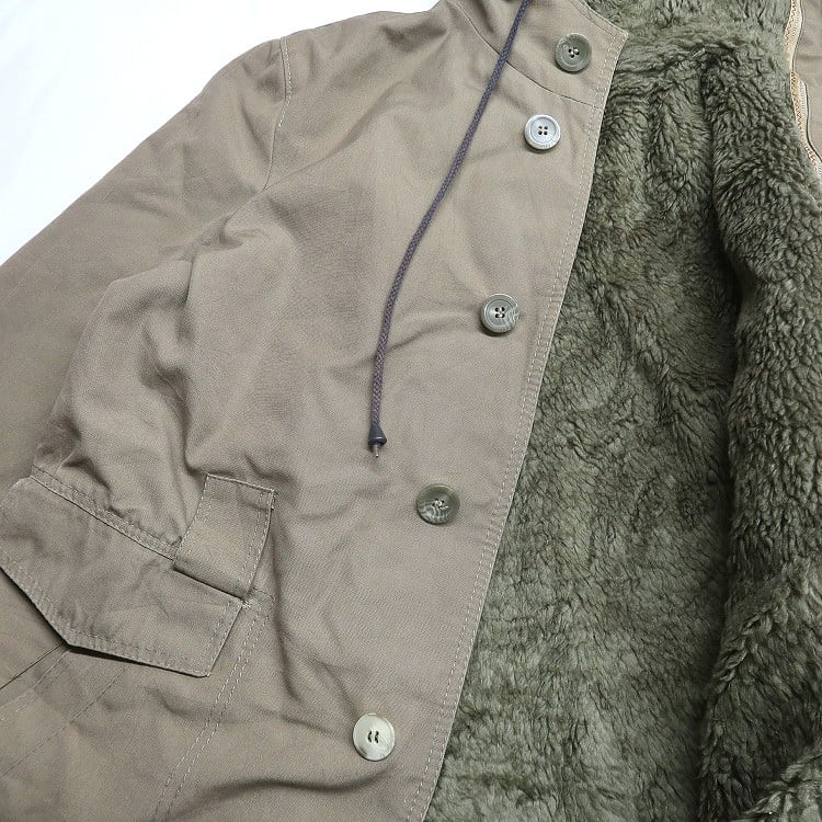 ■説明:全体的に使用感がありバック左肩、腰付近に汚れが見られます。その他目立った汚れ、ダメージはありません。※ベルト欠損?また、フロント1番下のボタンが異なるボタンです。