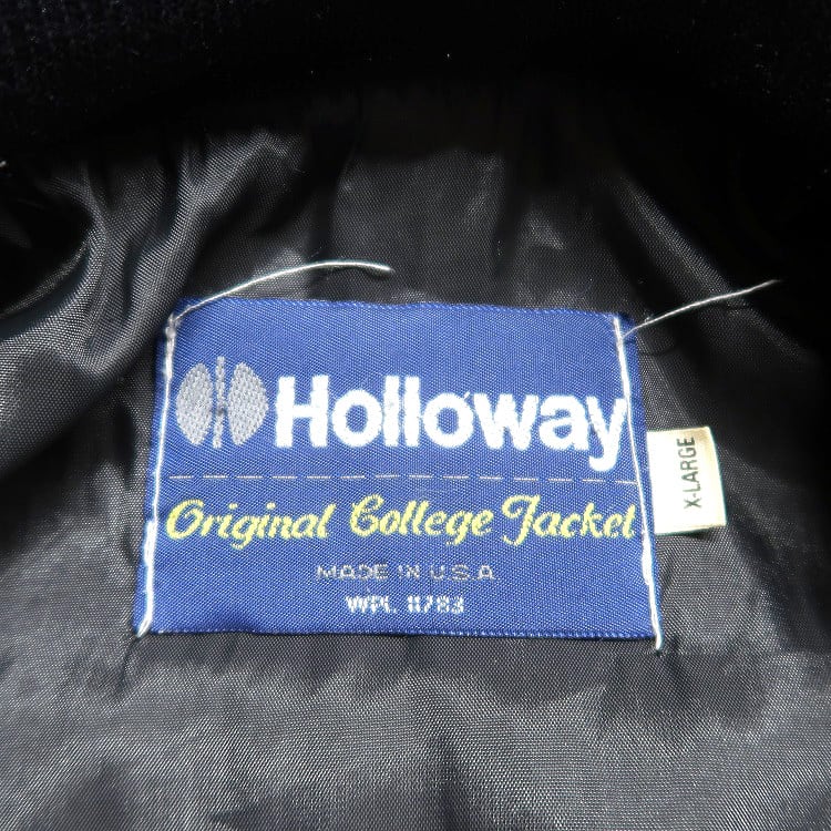 古着 ~90年代 USA製 HOLLOWAY ホロウェイ ウール 袖レザー 切り替え 企業ロゴ 刺繍 スタジャン ブラック 表記:XL gd408020n w51208 | 古着屋SLAT オンラインショップ 【古着通販】|東京 高円寺 レギュラー・ヴィンテージ古着