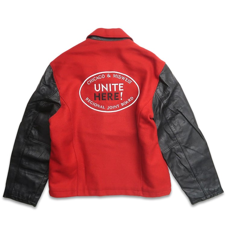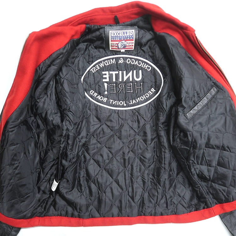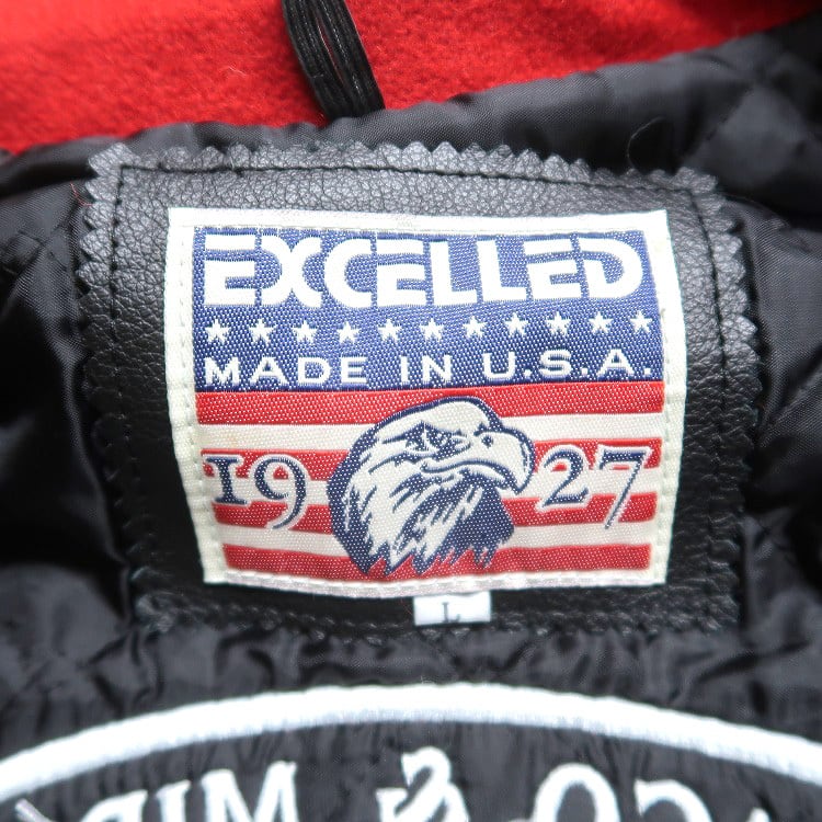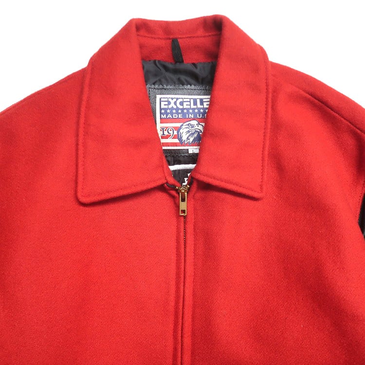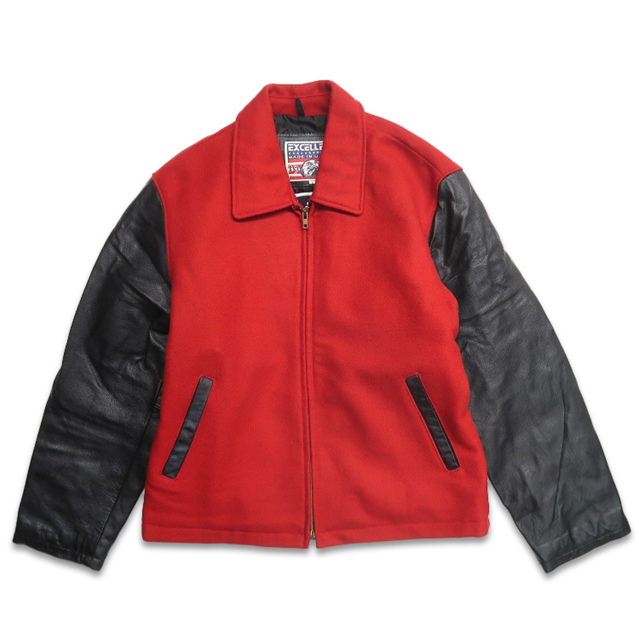 古着 USA製 EXCELLED ウール 袖レザー 切り替え 刺繍 スタジャン レッド ブラック 表記:L gd408021n w51208 | 古着屋SLAT オンラインショップ 【古着通販】|東京 高円寺 レギュラー・ヴィンテージ古着