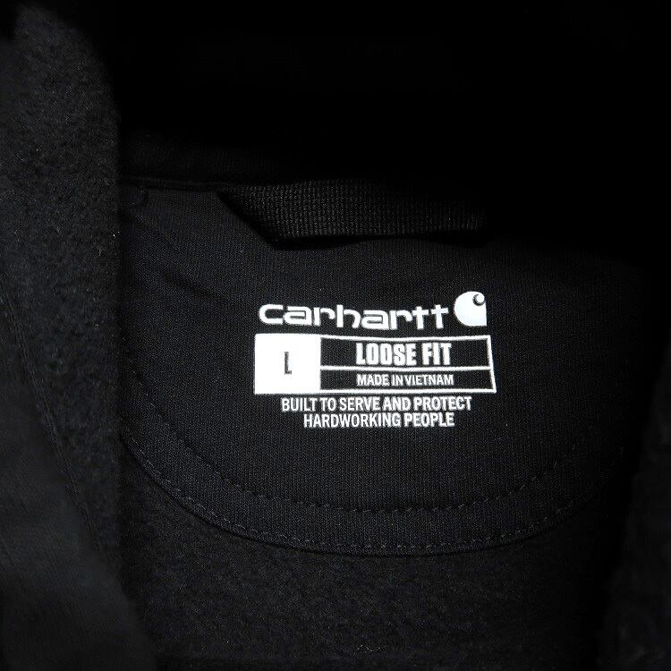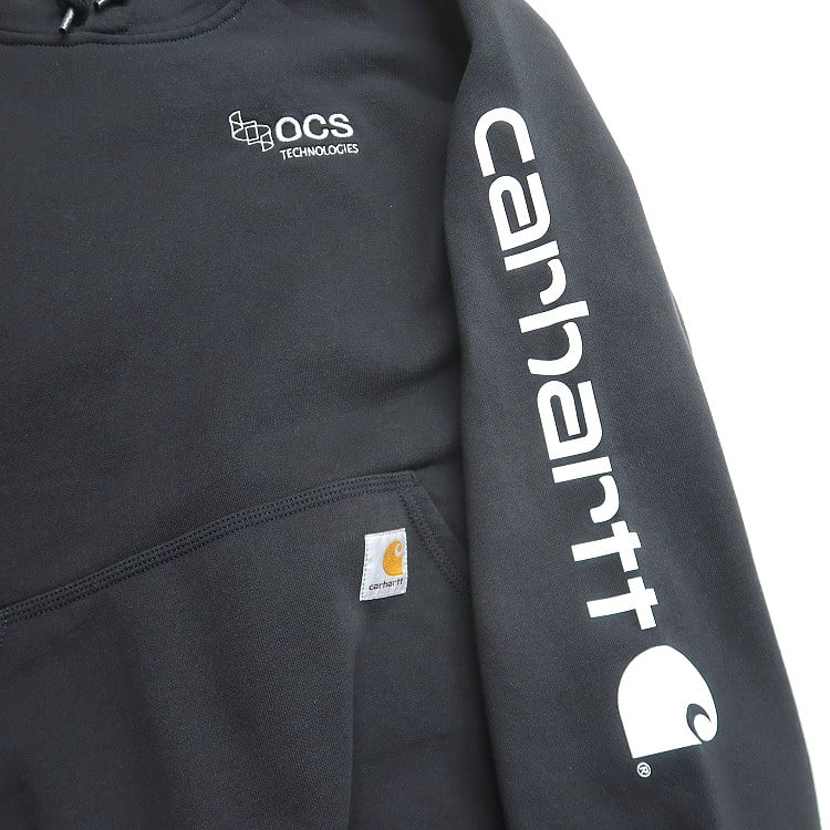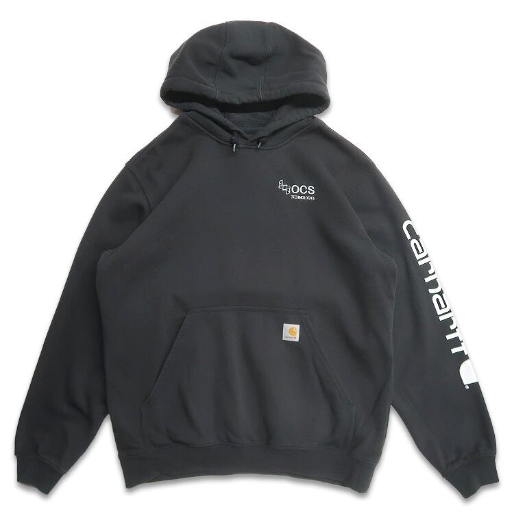 古着 カーハート Carhartt 企業ロゴ 刺繍 袖プリントスウェットパーカー トレーナー ワンポイント ブラック 表記:L gd408061n w51211