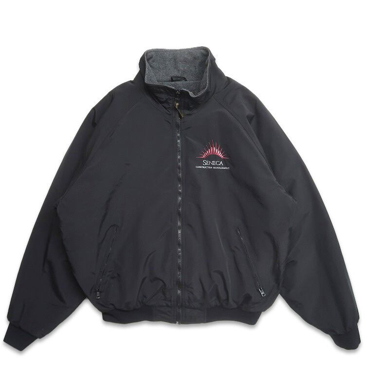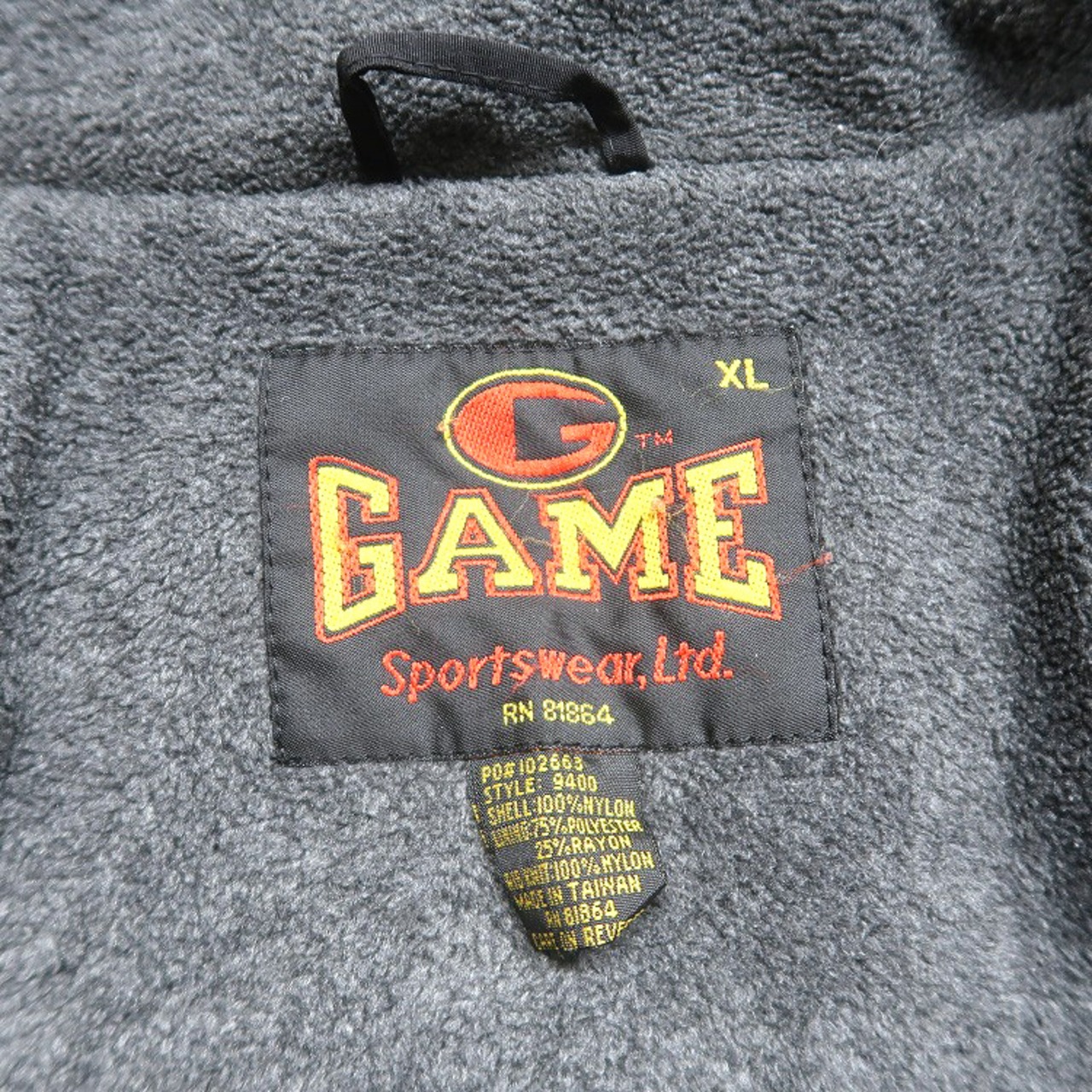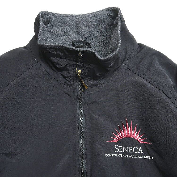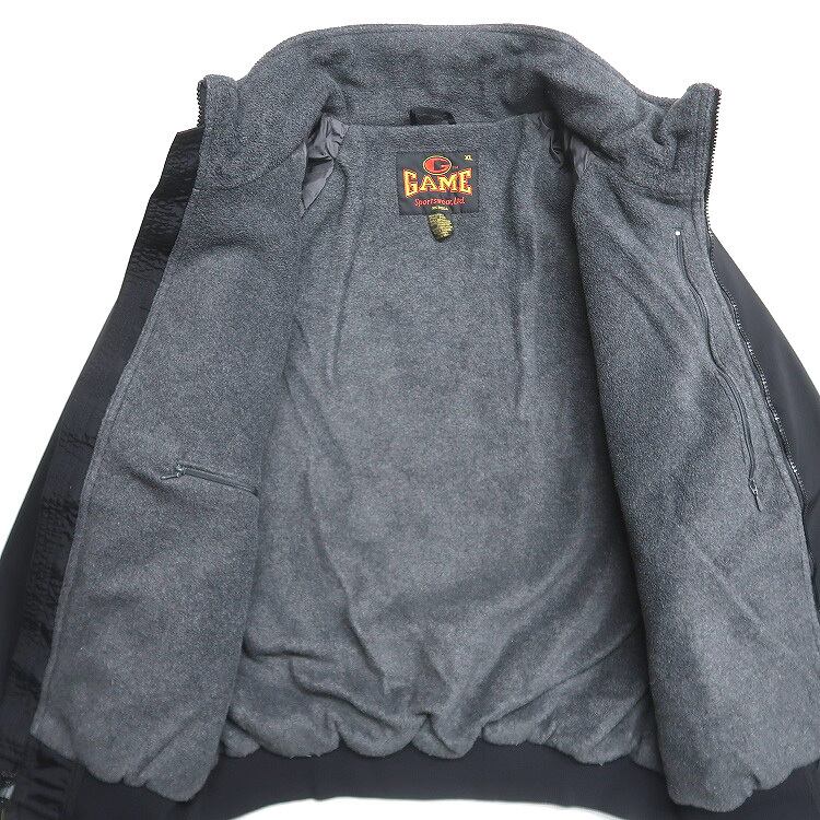 古着 GAME SPORTSWEAR 企業ロゴ 刺繍 ナイロン ジップアップジャケット 裏地フリース ブラック 表記:XL gd408065n w51211