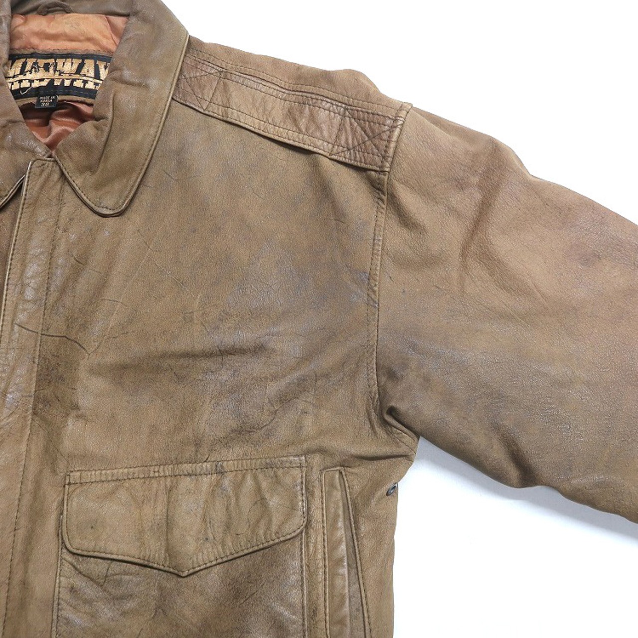 古着 MIDWAY 本革 A-2タイプ レザー ジャケット ブルゾン ブラウン 表記:38 gd408076n w51212 | 古着屋SLAT オンラインショップ 【古着通販】|東京 高円寺 レギュラー・ヴィンテージ古着