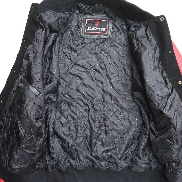 古着 SLEDWISE ウール 袖レザー 切り替え スタジャン ブラック レッド 表記:XXL gd408105n w51215 | 古着屋SLAT オンラインショップ 【古着通販】|東京 高円寺 レギュラー・ヴィンテージ古着