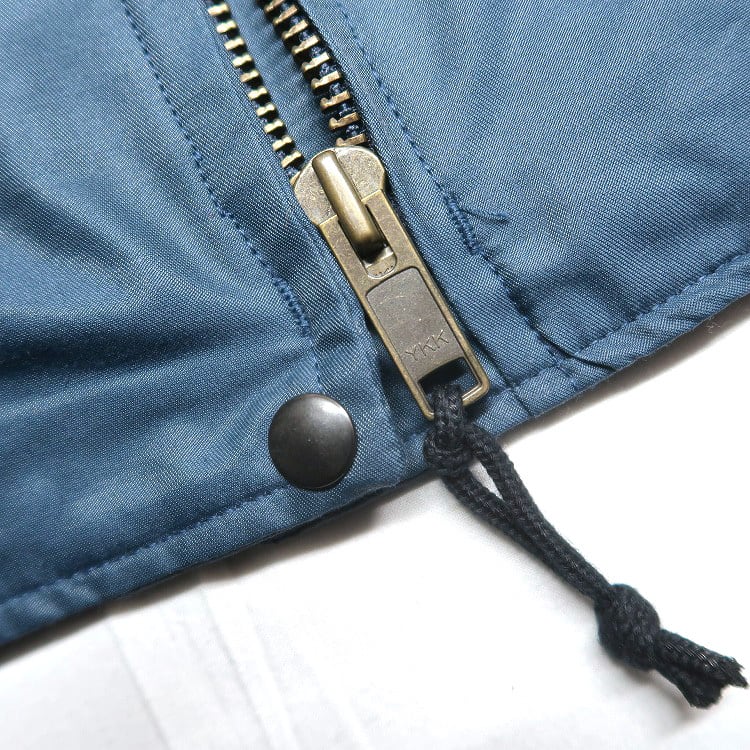 ■説明:未使用のためコンディション良好です。カナダ軍屈指の名作のフライトジャケット。中綿の入らないライトアウターでL-2Bに似ておりますが、裾リブは付かない為L-2BとCWU-7/Pの中間の様な特徴的なデザインです。 青みの強いエアフォースブルーが非常にクールです。