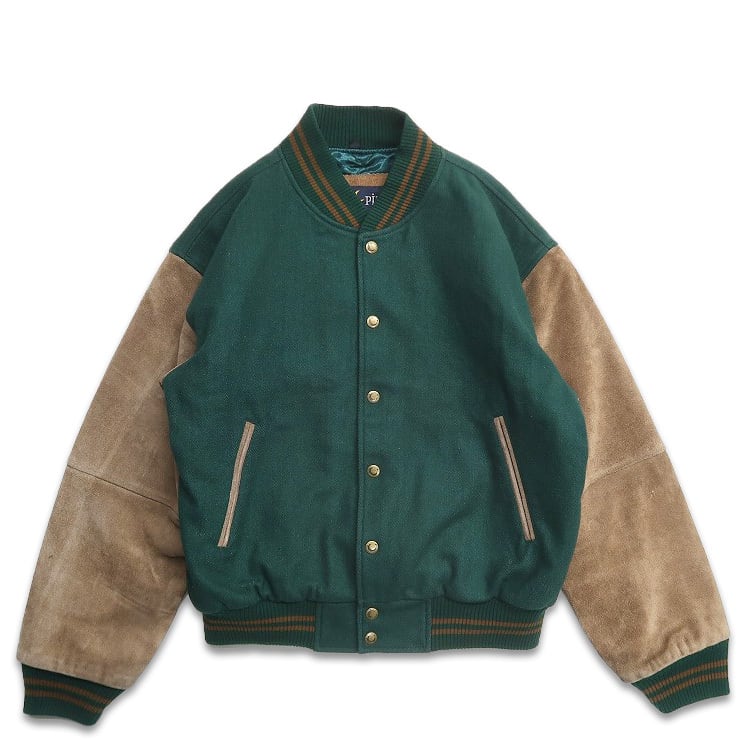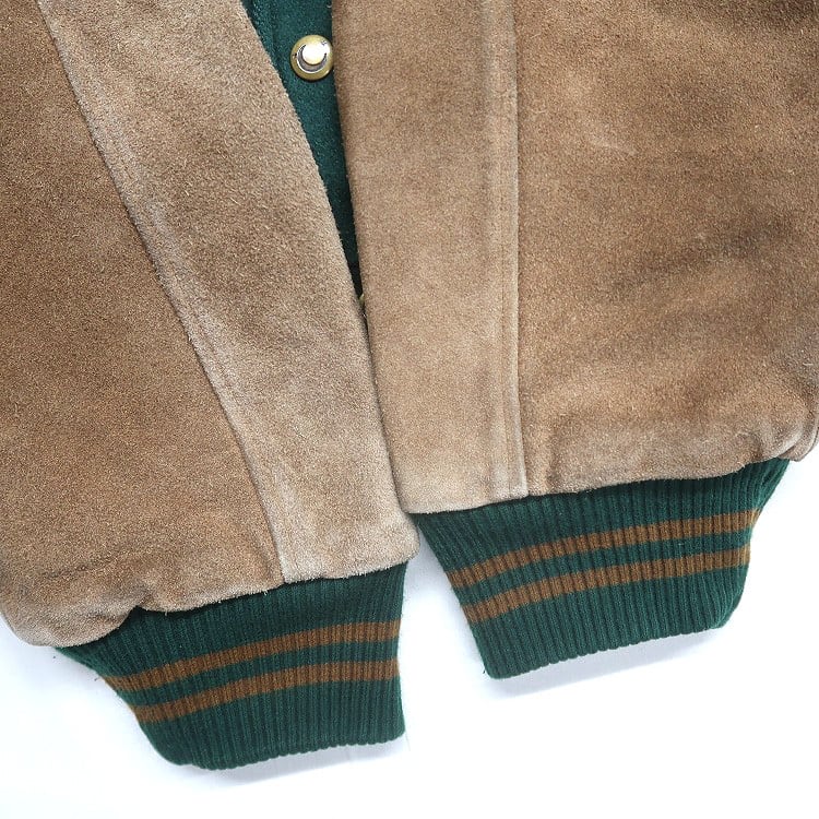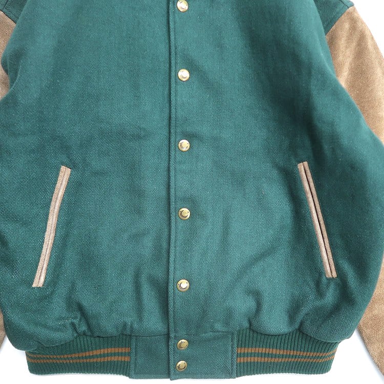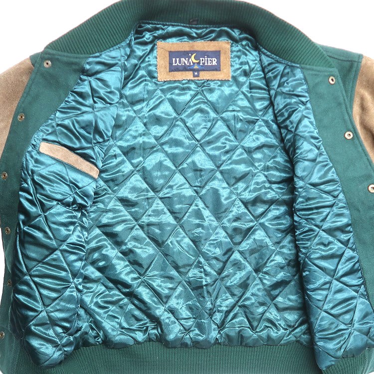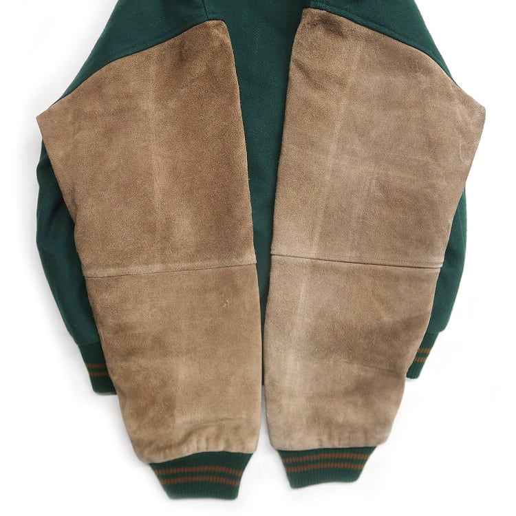 古着 LUNA PIER ウール 袖レザー スウェードレザー 切り替え スタジャン 刺繍 グリーン ベージュ 表記:M gd408209n w51225 | 古着屋SLAT オンラインショップ 【古着通販】|東京 高円寺 レギュラー・ヴィンテージ古着