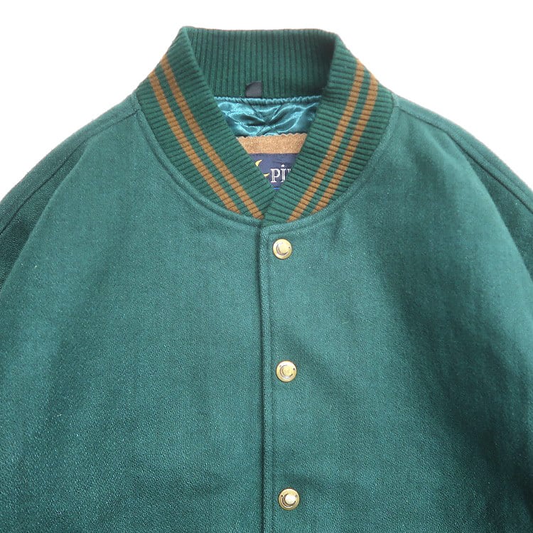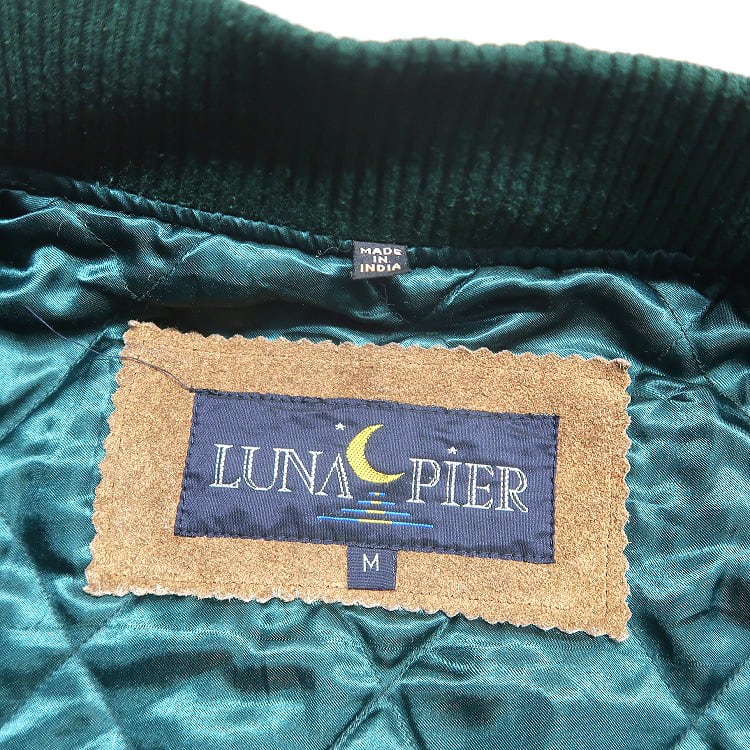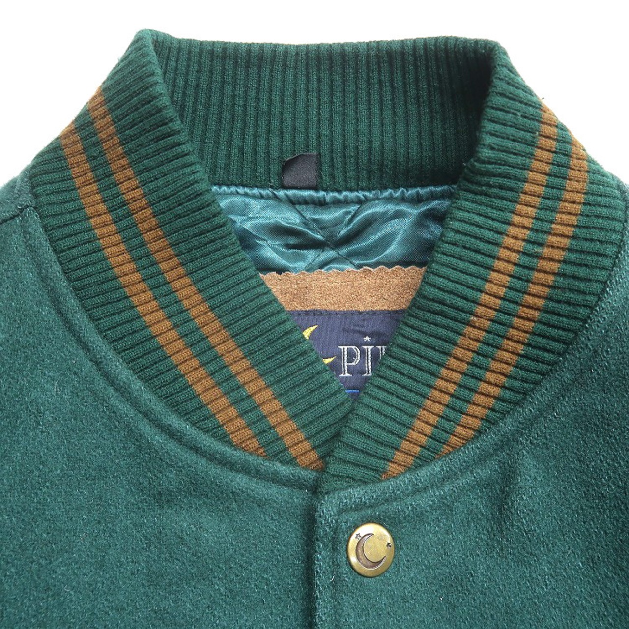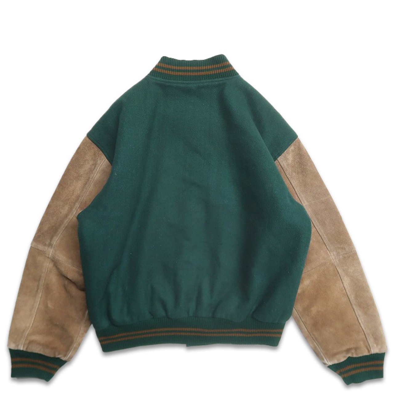 古着 LUNA PIER ウール 袖レザー スウェードレザー 切り替え スタジャン 刺繍 グリーン ベージュ 表記:M gd408209n w51225 | 古着屋SLAT オンラインショップ 【古着通販】|東京 高円寺 レギュラー・ヴィンテージ古着