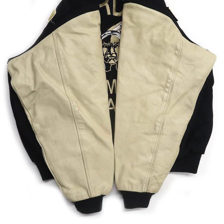 古着 FULL MOTION APPAREL ウール 袖レザー 切り替え スタジャン 刺繍 ワッペン ブラック ベージュ 表記:L gd408294n w60106 | 古着屋SLAT オンラインショップ 【古着通販】|東京 高円寺 レギュラー・ヴィンテージ古着
