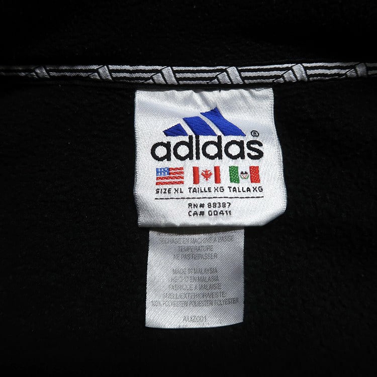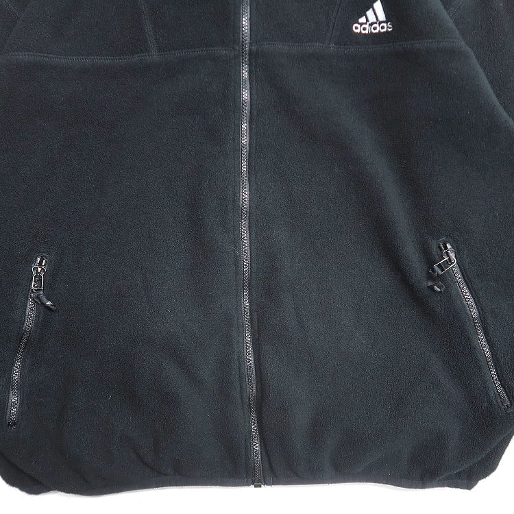 古着 90年代 アディダス adidas フリース ジャケット フルジップ ワンポイント ブラック 表記:XL gd408302n w60107