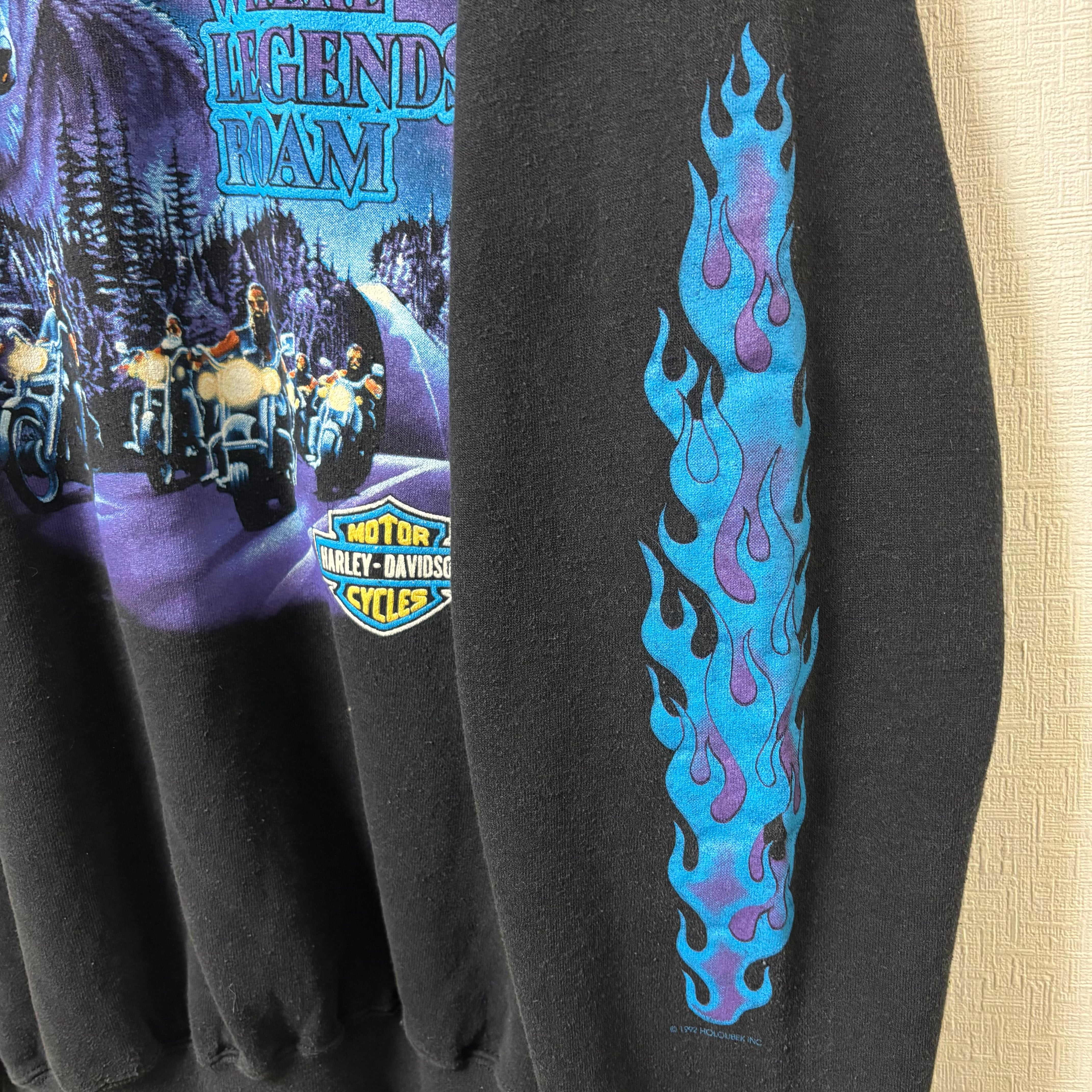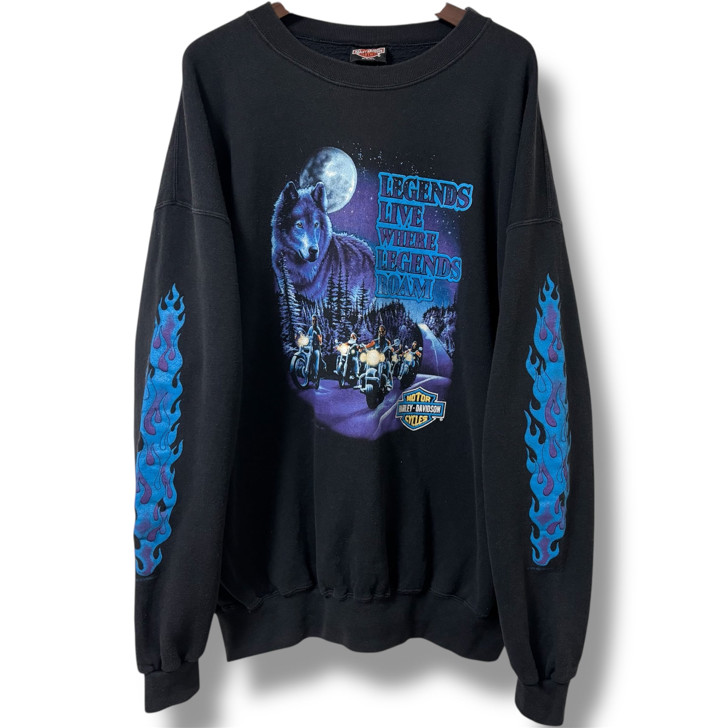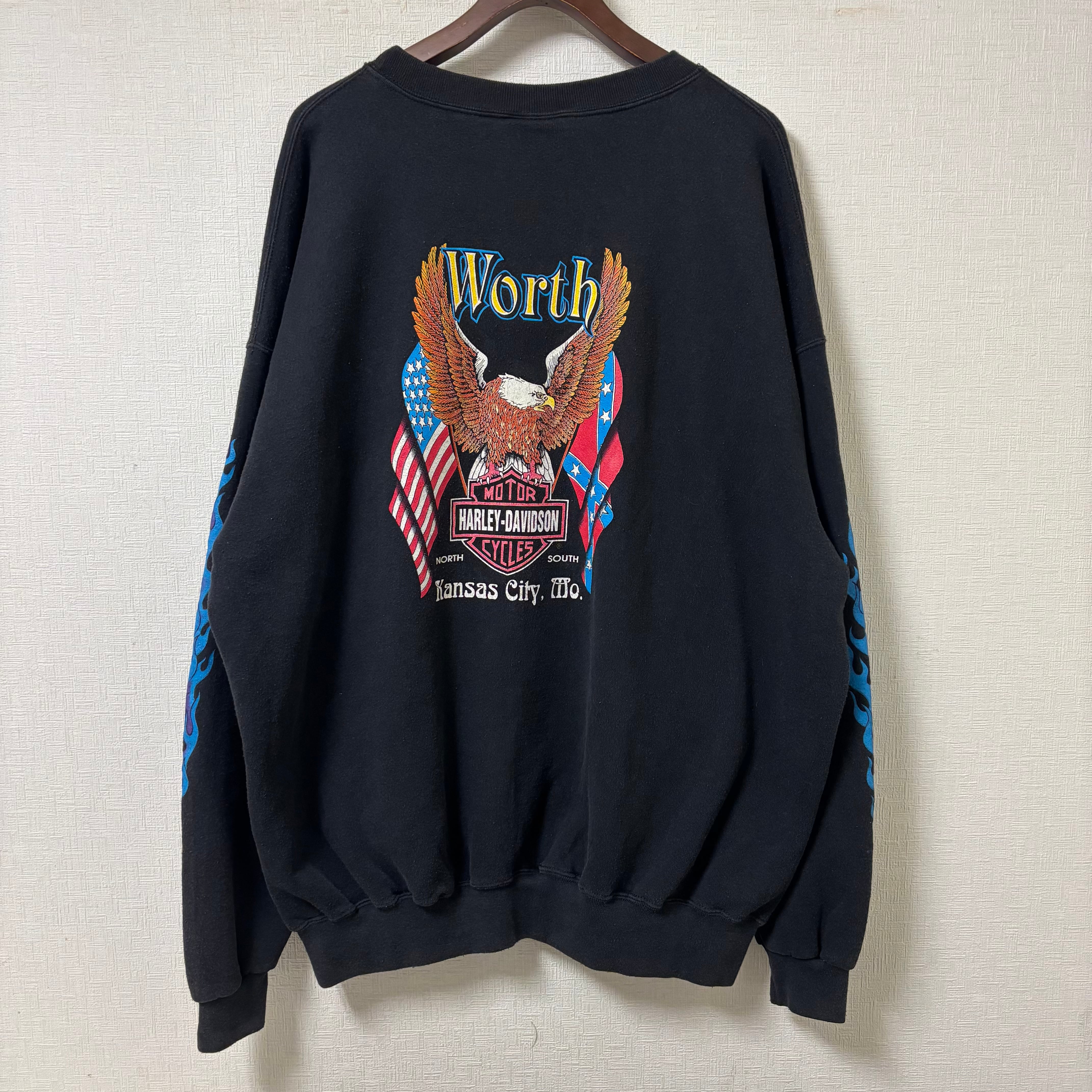 90年代 "XXXL" Harley-Davidson ハーレーダビッドソン プリントスウェット 袖フレイム 両面プリント 黒 ブラック 古着 古着屋 高円寺 ビンテージ n260119 | 古着屋SLAT オンラインショップ 【古着通販】|東京 高円寺 レギュラー・ヴィンテージ古着