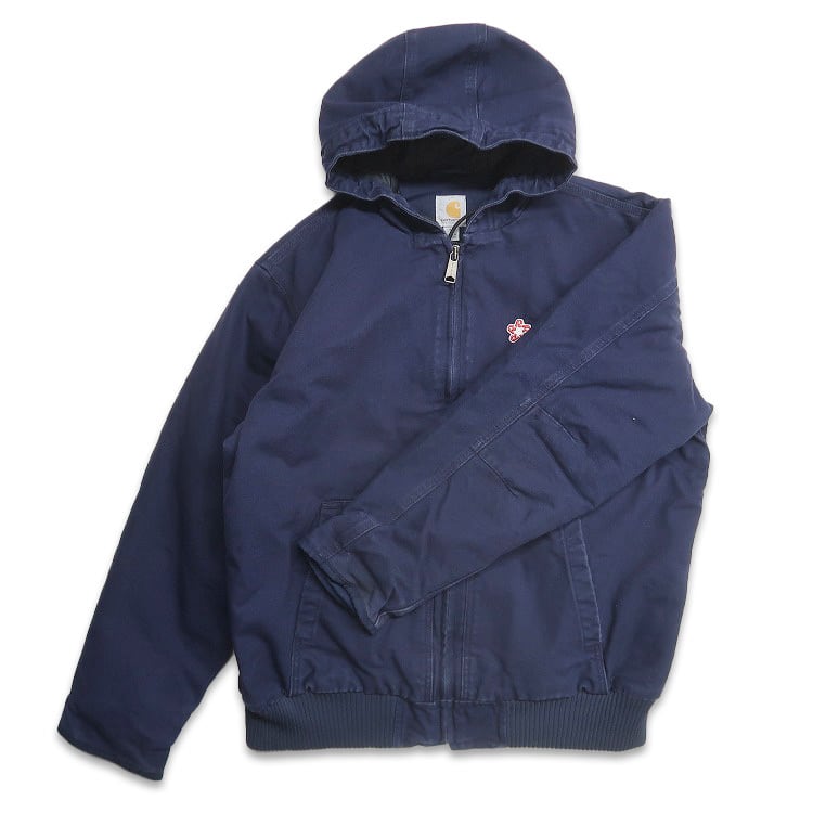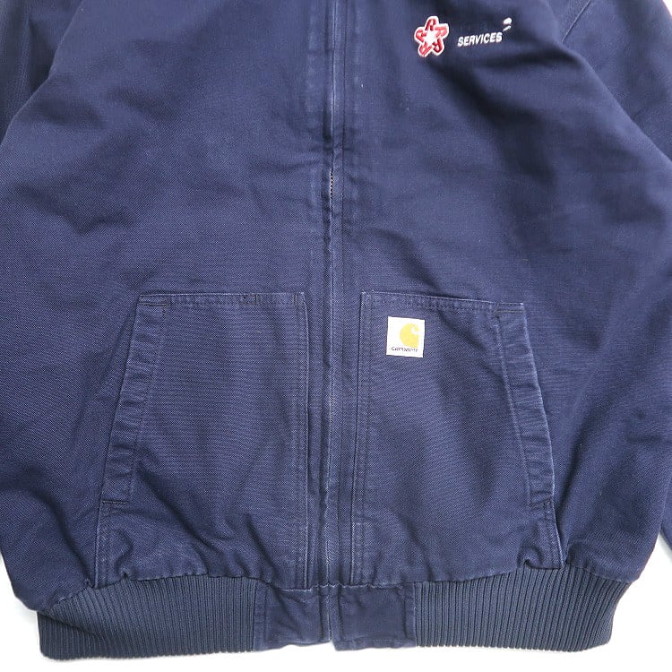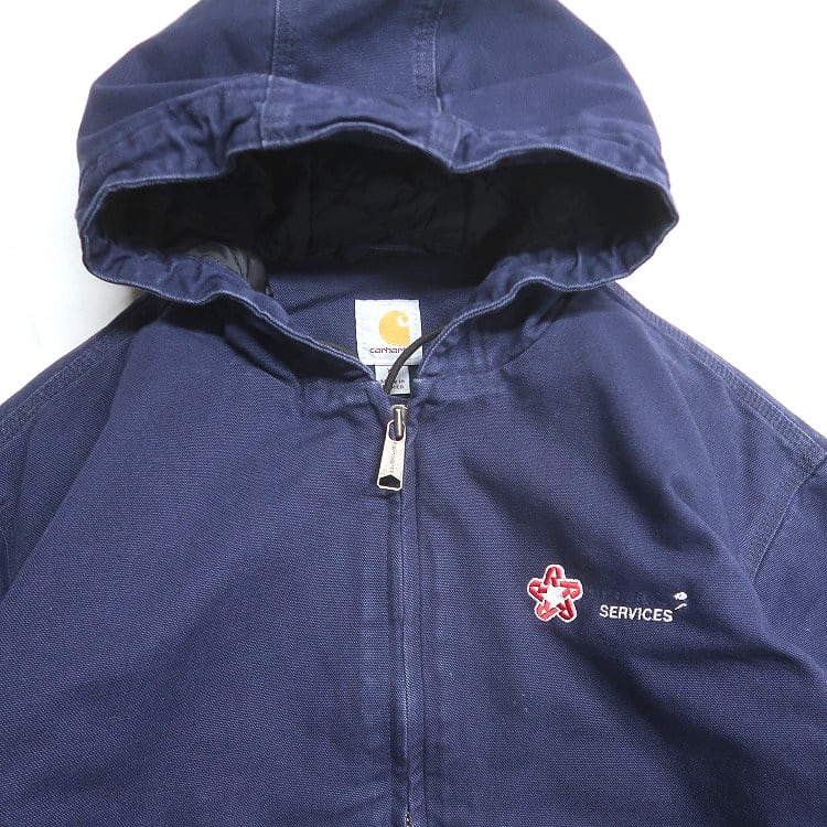 古着 カーハート Carhartt シンサレート 企業ロゴ 刺繍 アクティブジャケット ダックジャケット ワークジャケット パーカージャケット ネイビー 表記:XL-R gd408448n w60121 | 古着屋SLAT オンラインショップ 【古着通販】|東京 高円寺 レギュラー・ヴィンテージ古着