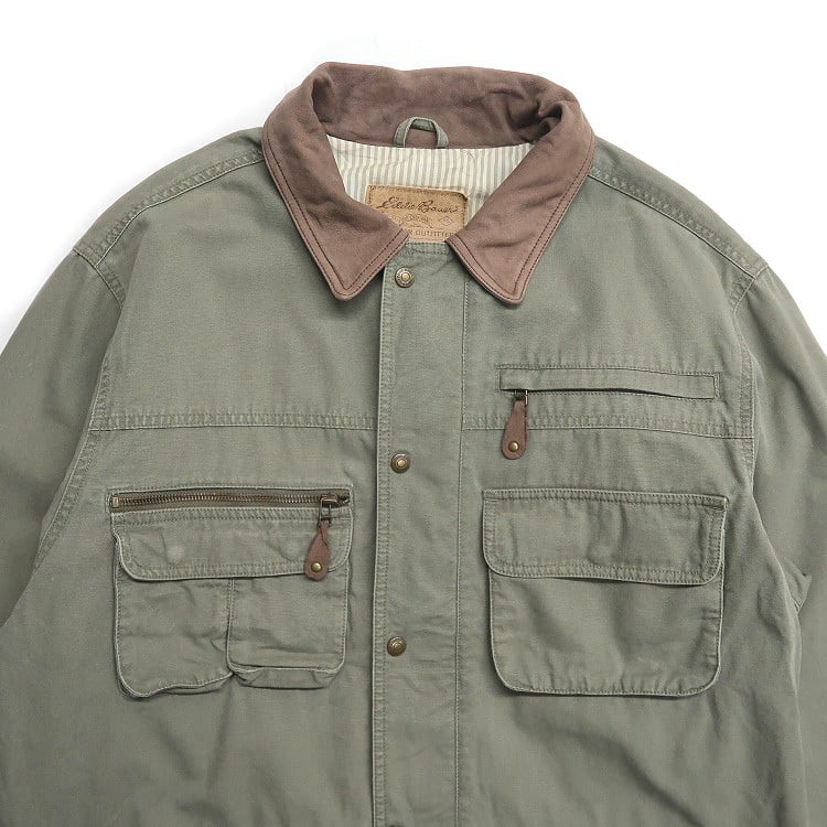 古着 エディーバウアー Eddie Bauer ハンティングジャケット 襟レザー セージグリーン 表記:L gd408485n w60128 | 古着屋SLAT オンラインショップ 【古着通販】|東京 高円寺 レギュラー・ヴィンテージ古着