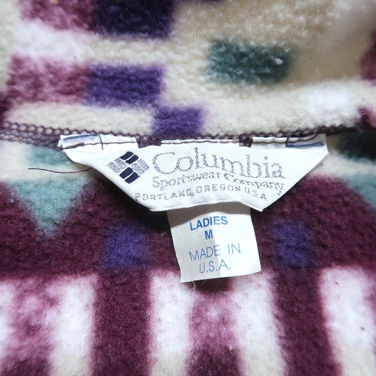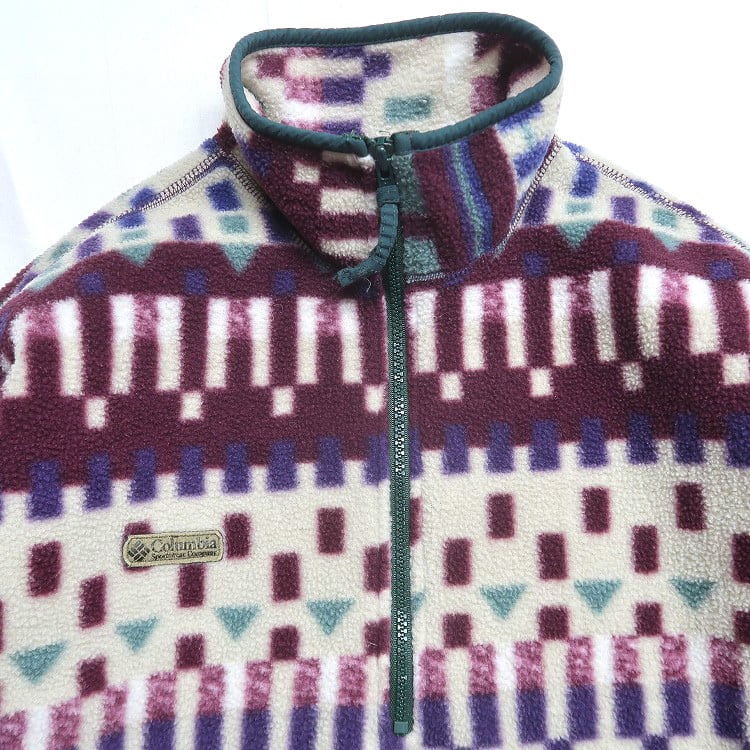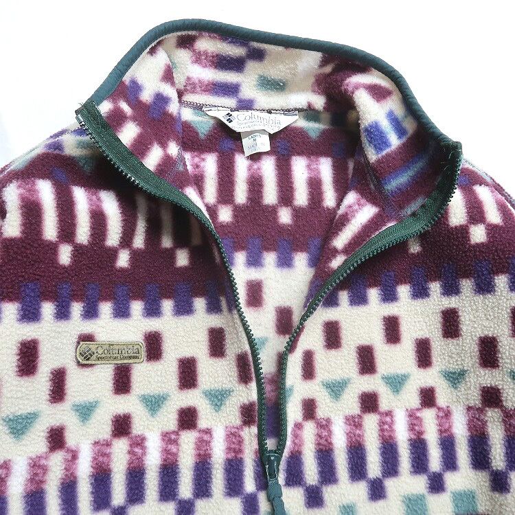 古着 USA製 コロンビア Columbia 総柄 ハーフジップ プルオーバー フリースジャケット 表記:LADIES M gd408521n w60204