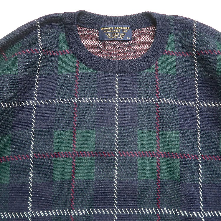 古着 イタリア製 ブルックスブラザーズ Brooks brothers ウールニット セーター チェック 表記:XL gd408553n w60216 | 古着屋SLAT オンラインショップ 【古着通販】|東京 高円寺 レギュラー・ヴィンテージ古着