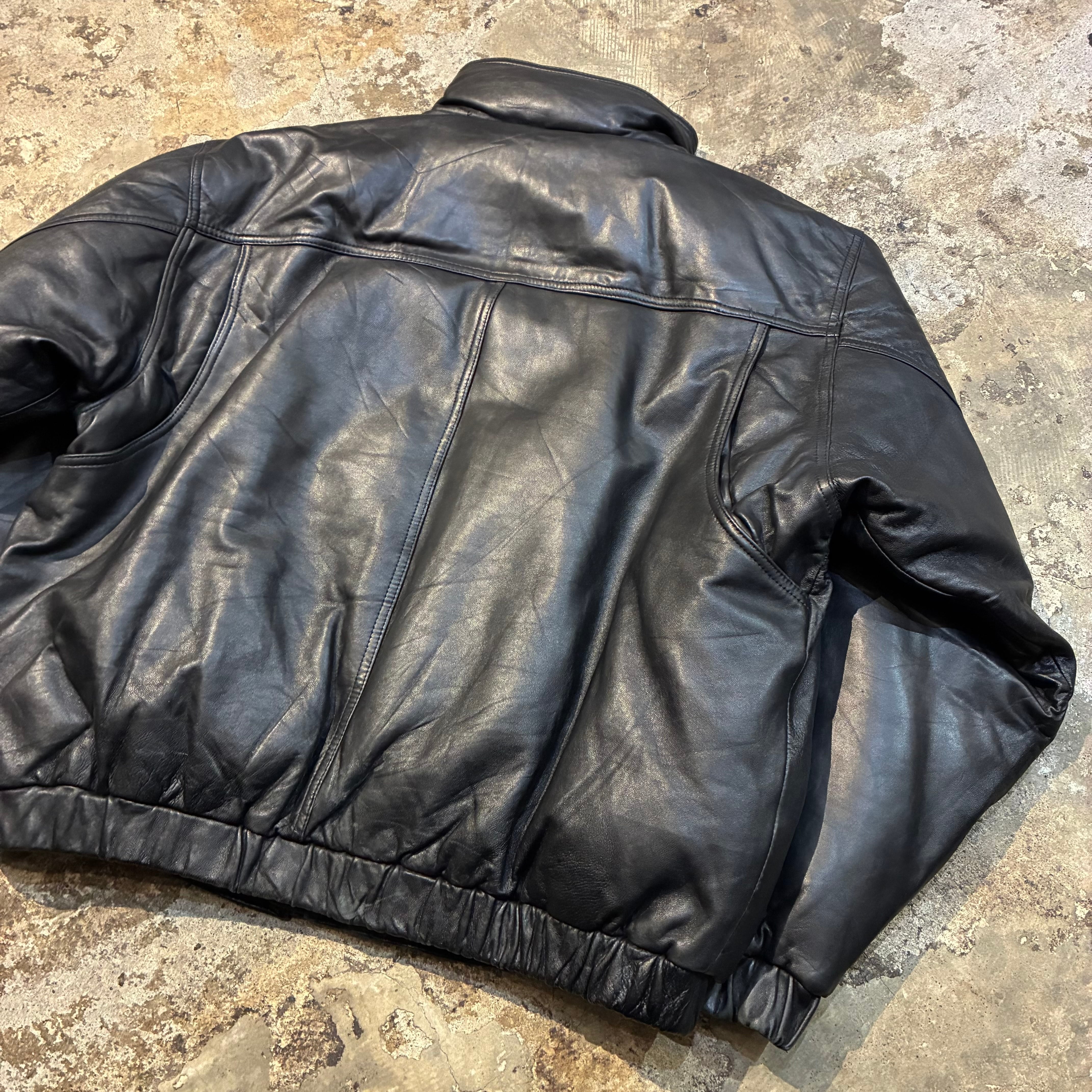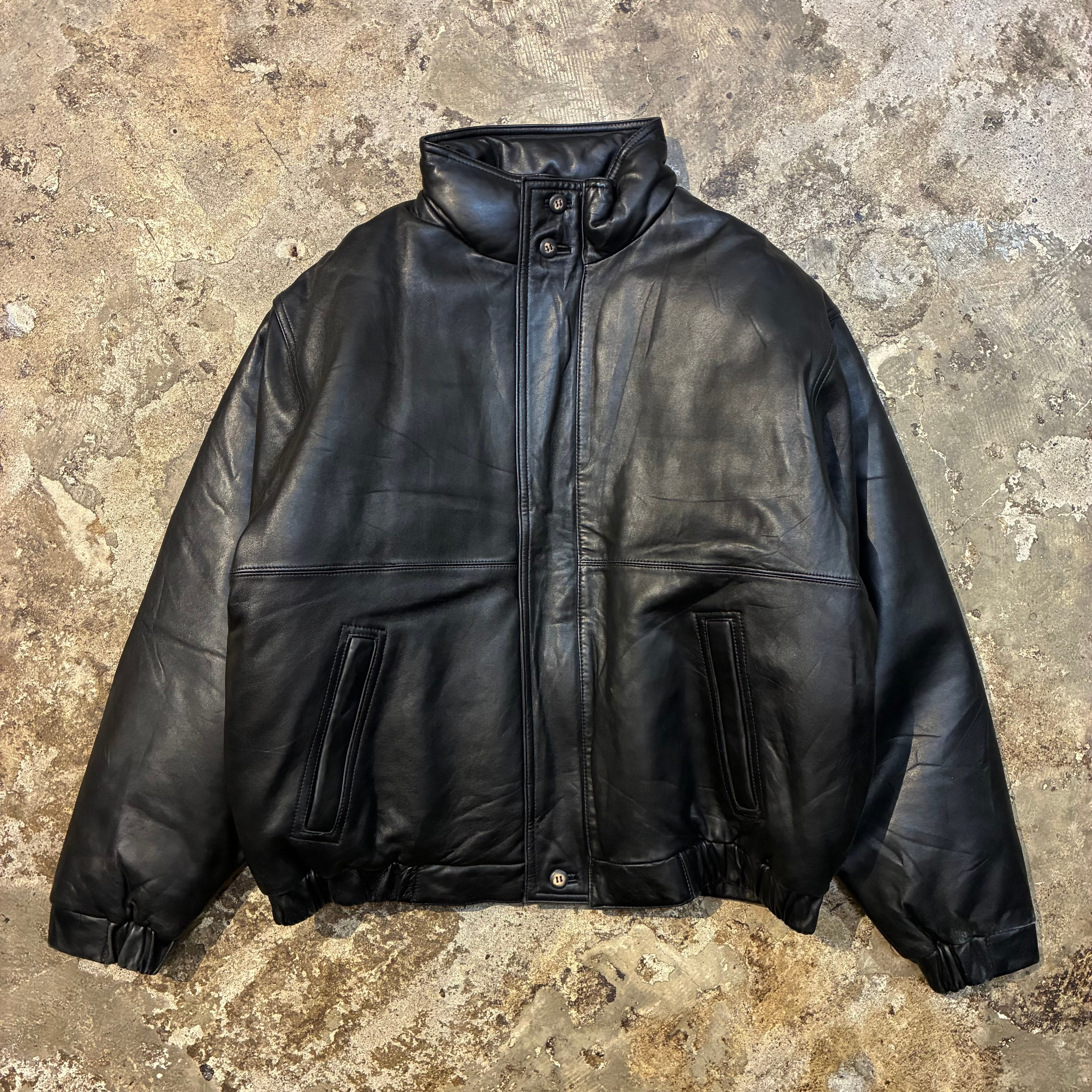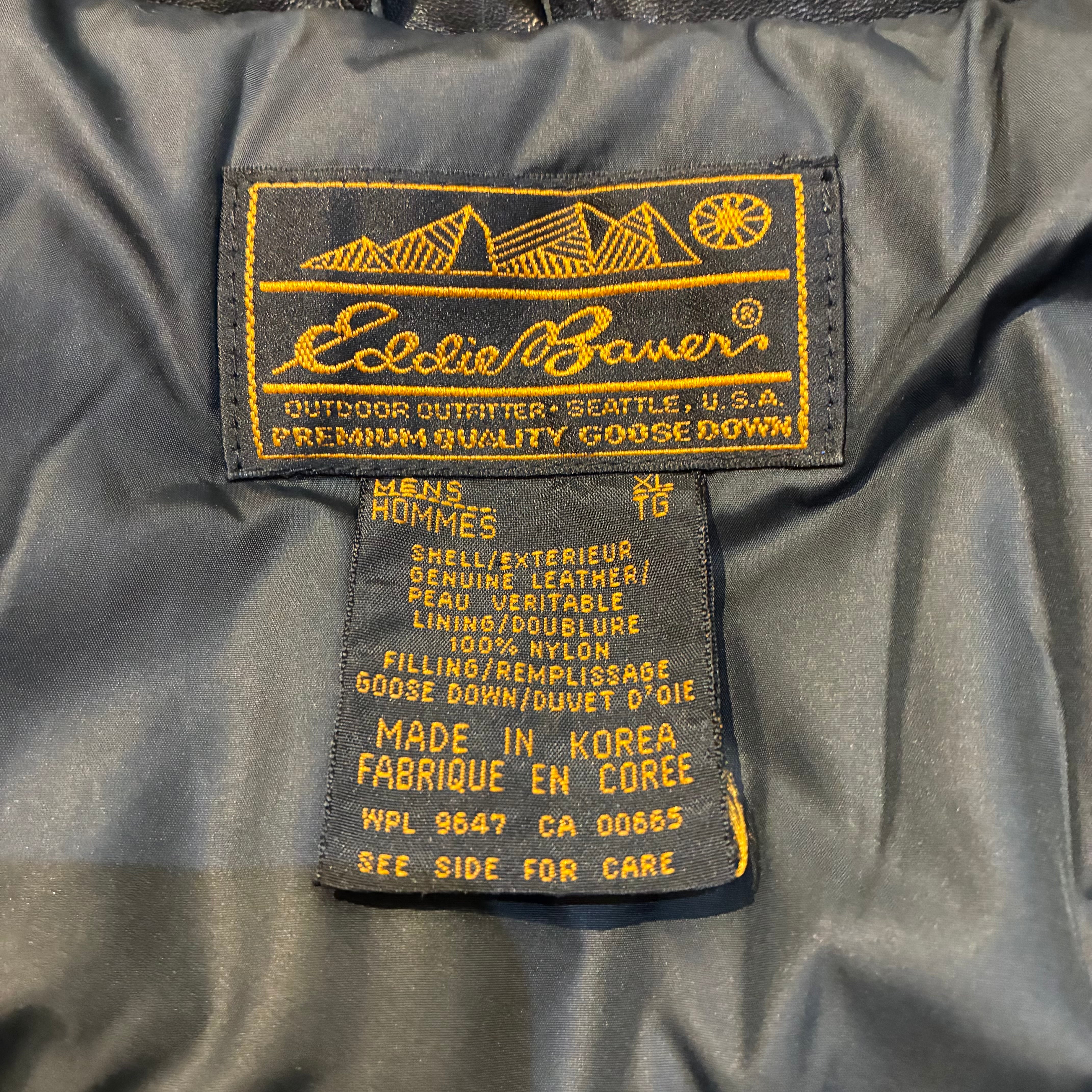 "XL" 90年代 Eddie Bauer エディバウアー レザー ダウンジャケット 黒タグ 黒 ブラック 古着 古着屋 高円寺 ビンテージ n60223