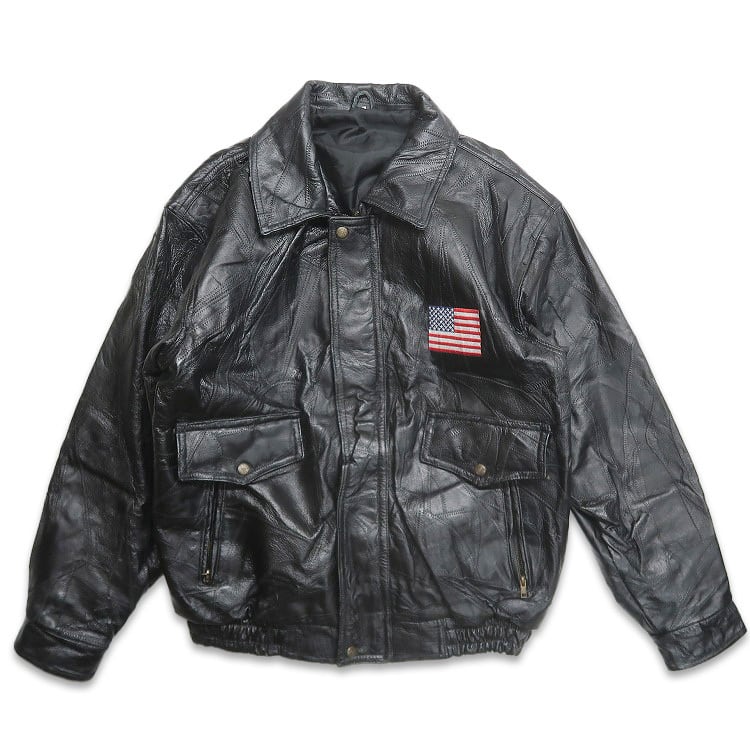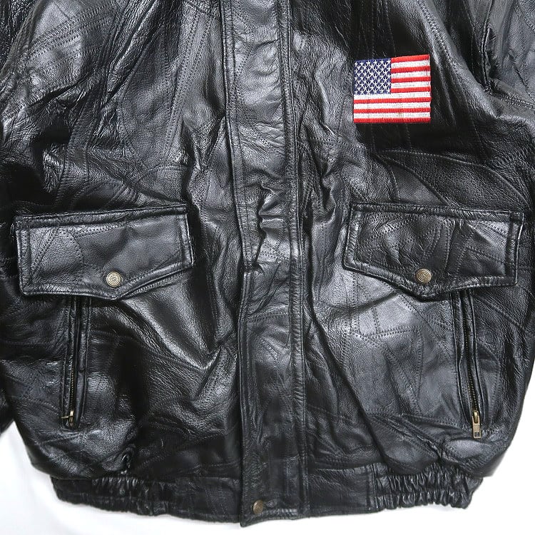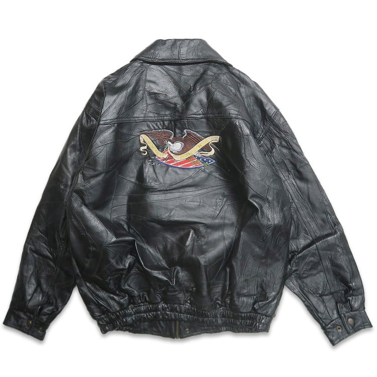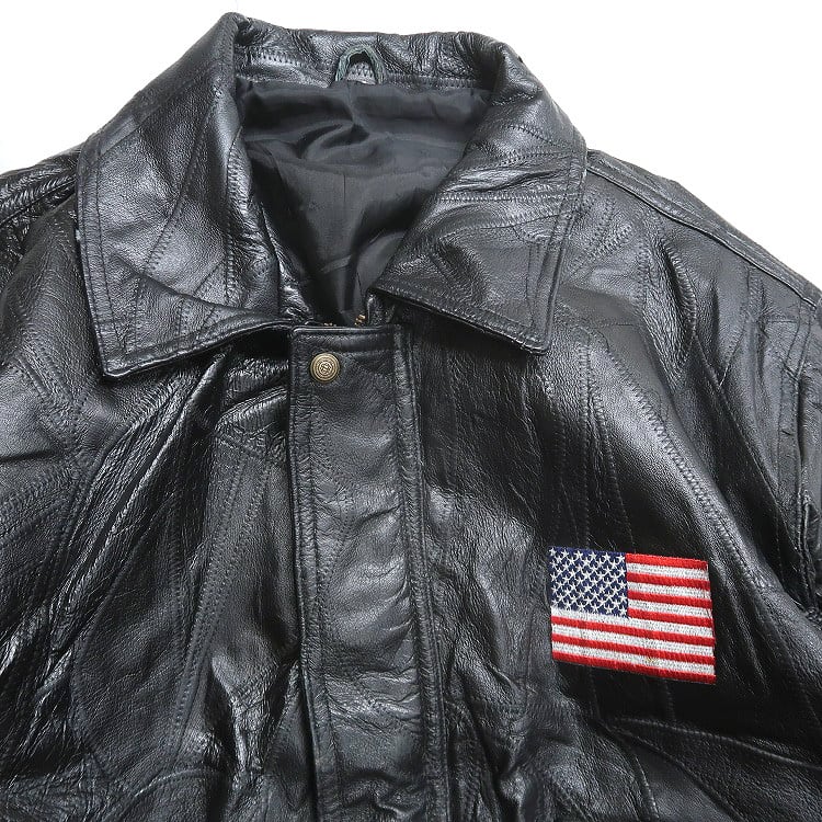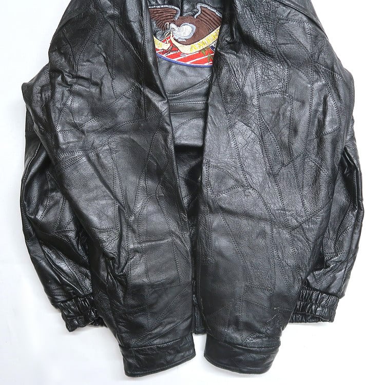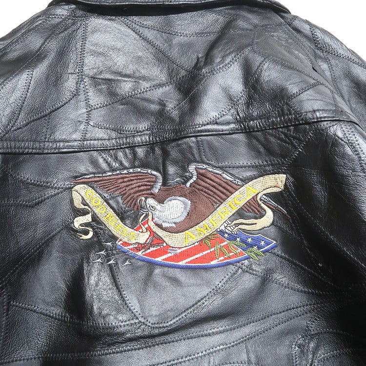 古着 GOD BLESS イーグル 星条旗 刺繍 パッチワークレザージャケット ブラック 表記:XL gd408663n w60302 | 古着屋SLAT オンラインショップ 【古着通販】|東京 高円寺 レギュラー・ヴィンテージ古着