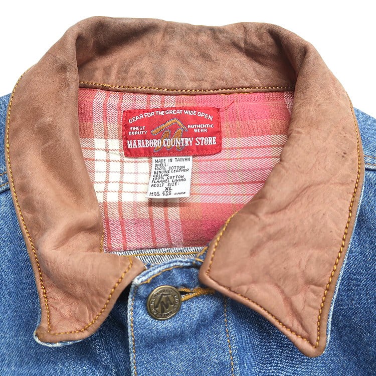 古着 90年代~ Marlboro Country Store マルボロ 襟レザー デニムジャケット ジージャン 表記:XL gd408673n w60303 | 古着屋SLAT オンラインショップ 【古着通販】|東京 高円寺 レギュラー・ヴィンテージ古着