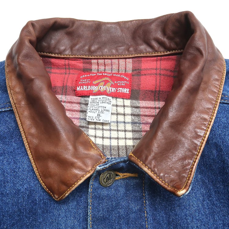 古着 90年代~ Marlboro Country Store マルボロ 襟レザー デニムジャケット ジージャン 表記:XL gd408674n w60303 | 古着屋SLAT オンラインショップ 【古着通販】|東京 高円寺 レギュラー・ヴィンテージ古着