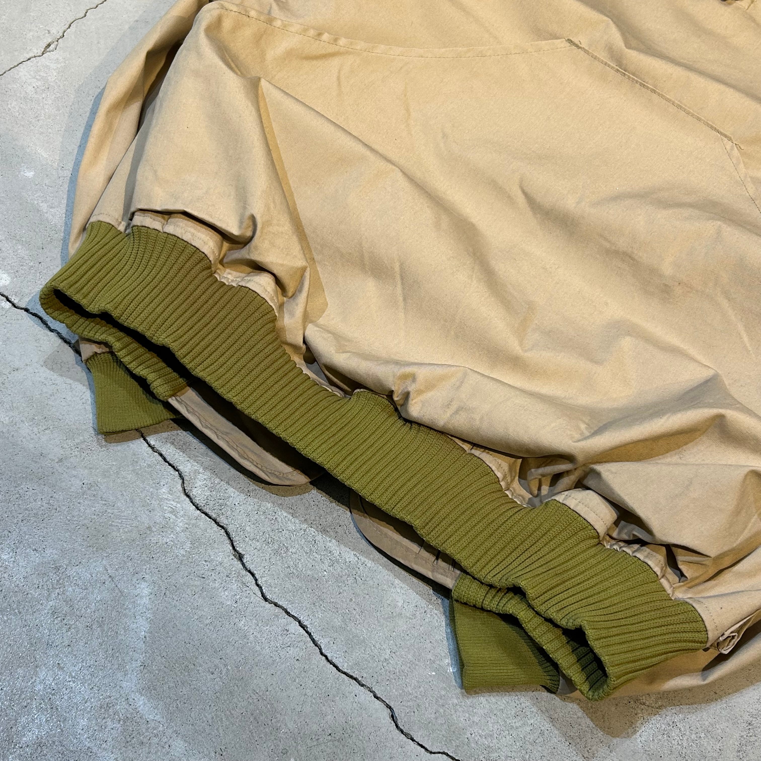 ボディのベージュに、リブのオリーブとジッパーのブラウンが良いアクセントになっており、カジュアルに着ていただけるかと思います。