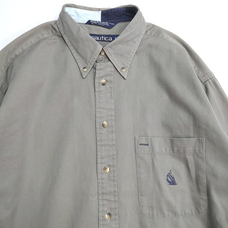 古着 90年代 ノーティカ NAUTICA ボタンダウンシャツ 長袖シャツ ワンポイント ベージュ 表記:XL gd408777n w60313 | 古着屋SLAT オンラインショップ 【古着通販】|東京 高円寺 レギュラー・ヴィンテージ古着