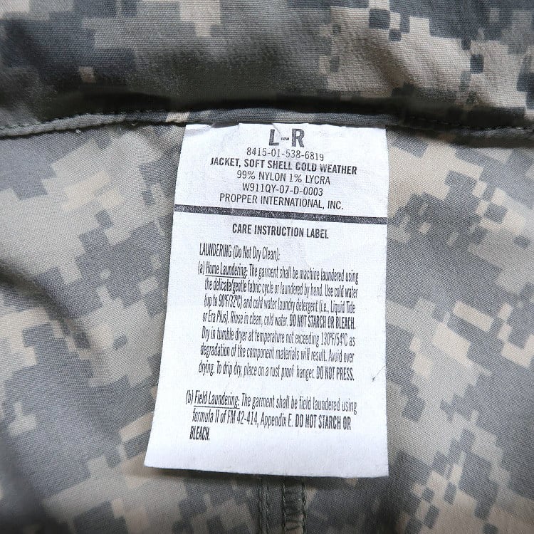 古着 U.S.ARMY ECWCS GEN3 LEVEL5 ACU コールドウェザー ソフトシェルジャケット ミリタリー 米軍 表記:L-R gd408805n w60316