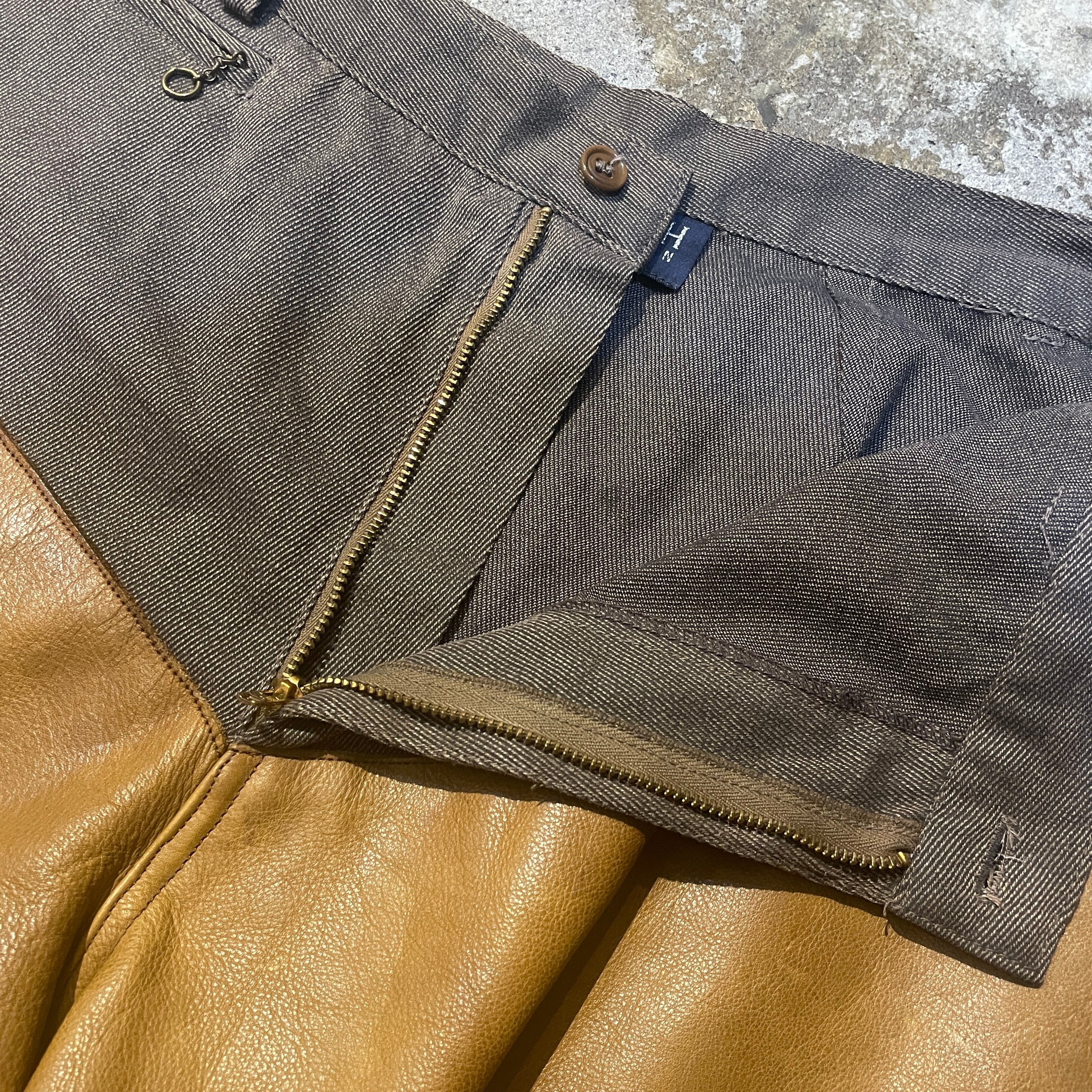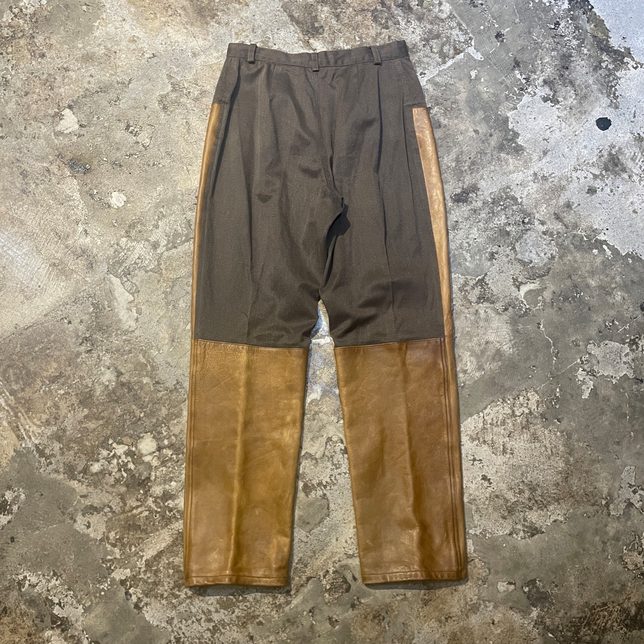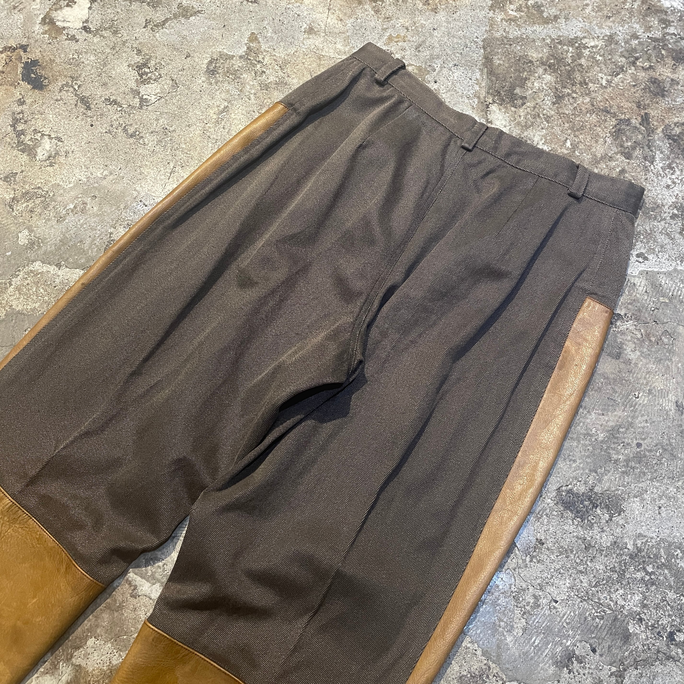商品説明 :90年代アメリカ製Ralph Laurenのハンティングパンツになります。上部は上質なコットンギャバジン、フロントには経年変化が楽しめるレザーを切り替えた存在感ある一本です。