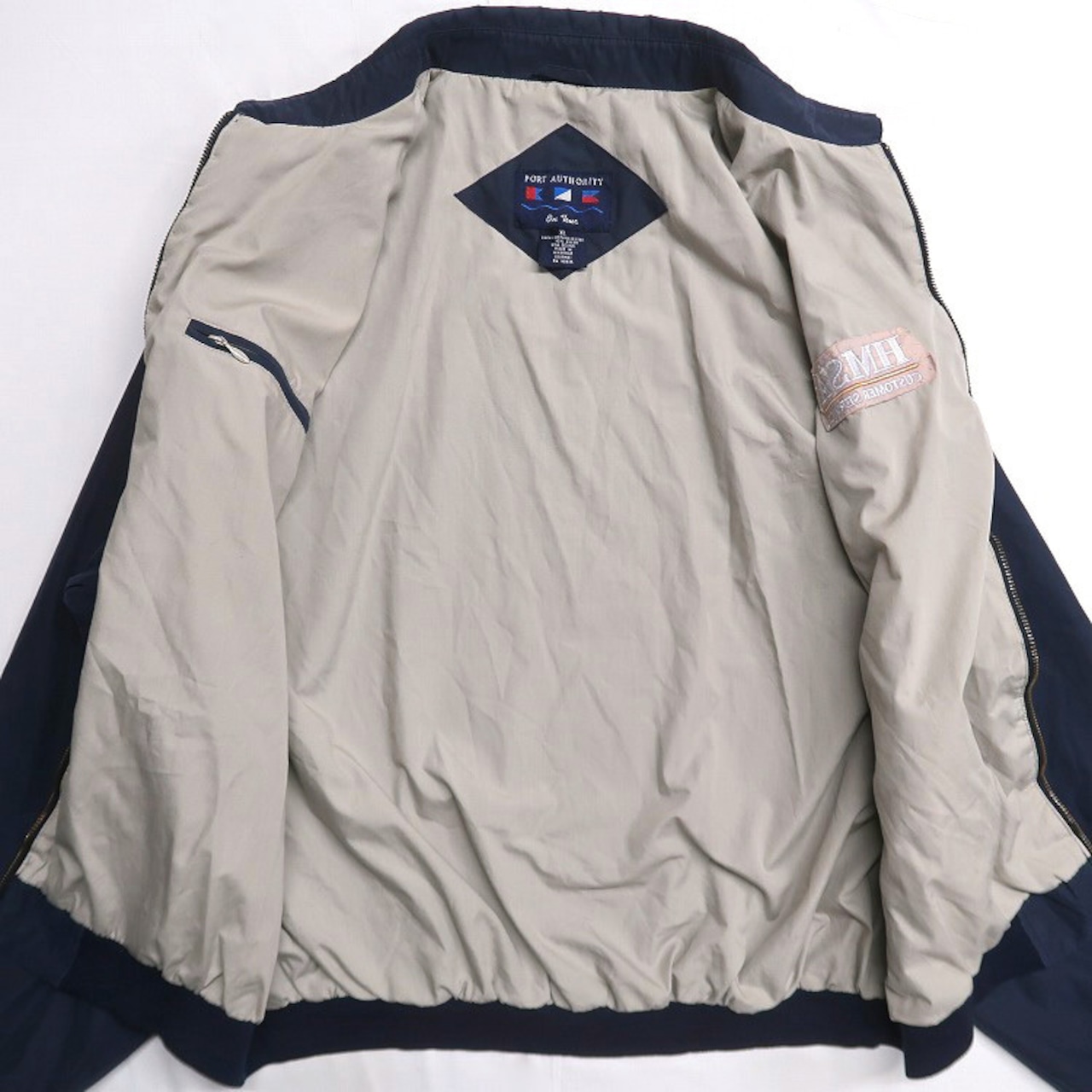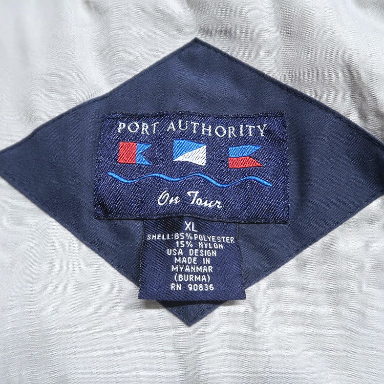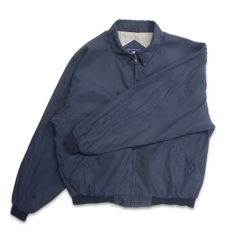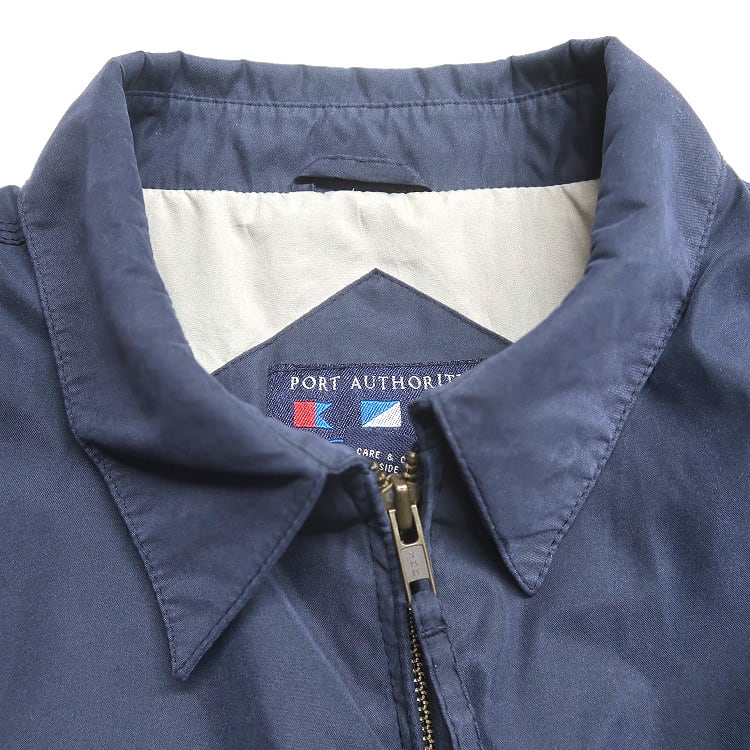 古着 PORT AUTHORITY 企業ロゴ 刺繍 スウィングトップ ブルゾン ピーチスキン ネイビー 表記:XL gd408852n w60320
